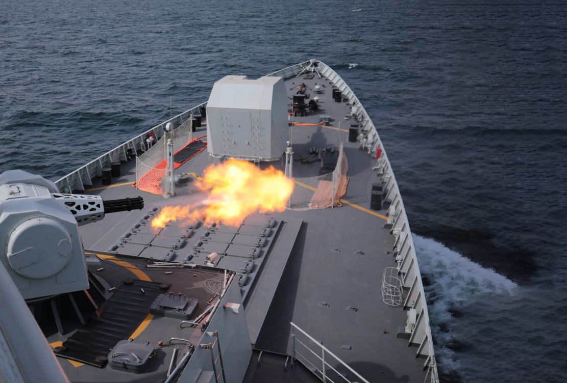 连日来,海军第41批护航编队结合护航任务开展实战背景下的主副炮实弹射击、武力营救被劫持商船、航行补给、舰载机着舰等课目训练,检验和提高编队应对多种安全威胁、完成多样化军事任务的能力。