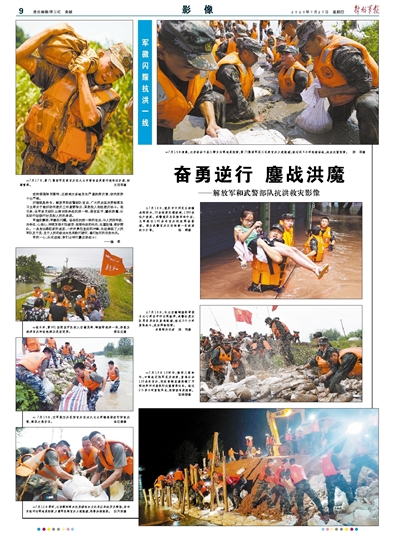 军旗在飘扬,军徽在闪耀。奋战在抗洪一线的官兵,与人民同呼吸、共命运、心连心,持续发扬不怕疲劳、连续作战的作风,处置险情,救护群众。一身身沾满泥浆的迷彩,一次次勇往直前的冲锋,生动展现了人民军队忠于党、忠于人民的政治本色和敢打硬仗、善打胜仗的优良作风。