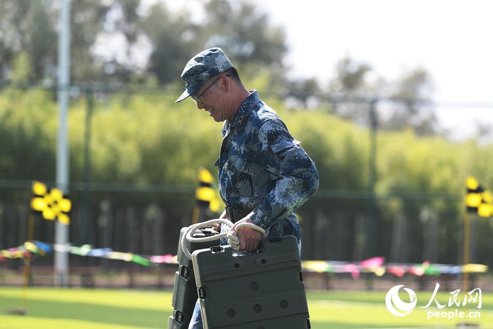 领导带头训练。