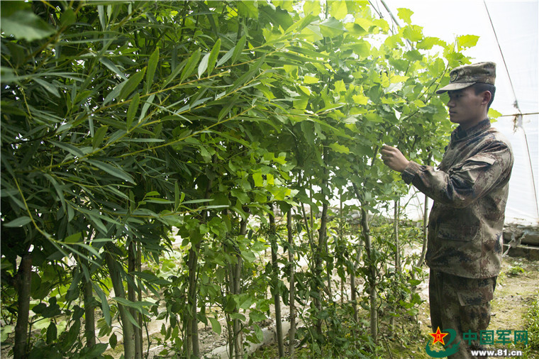 观察大棚的温度、湿度,给树苗浇水、施肥,这几抹绿意成了全站官兵心头的牵挂。