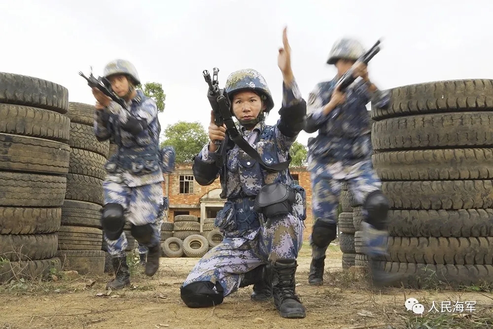 哪个女生不爱美?但在严玲眼中,女子海军陆战队员的青春靓丽,只有和国旗红搭在一起才最配。