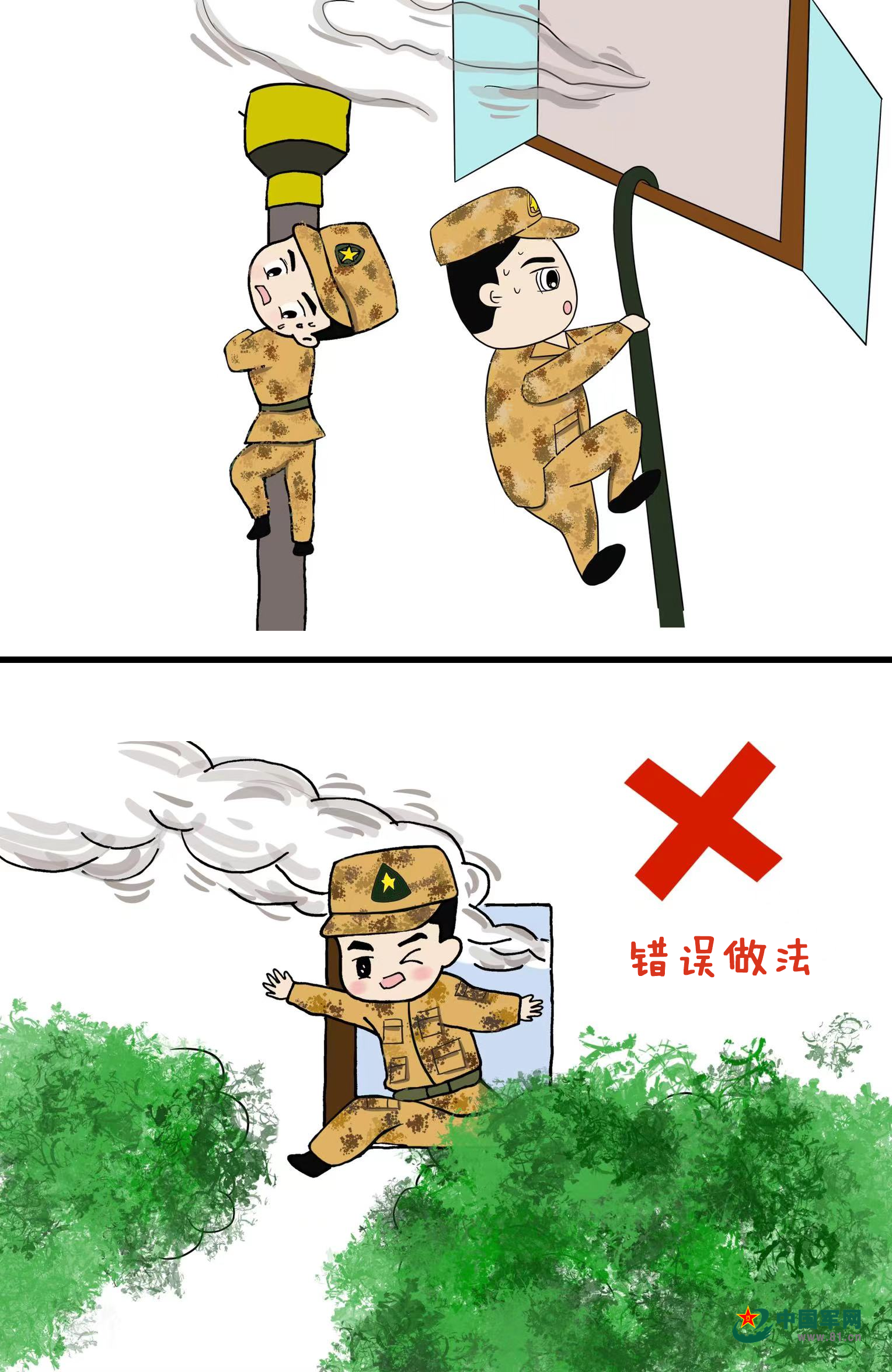 14.缓降逃生,滑绳自救。