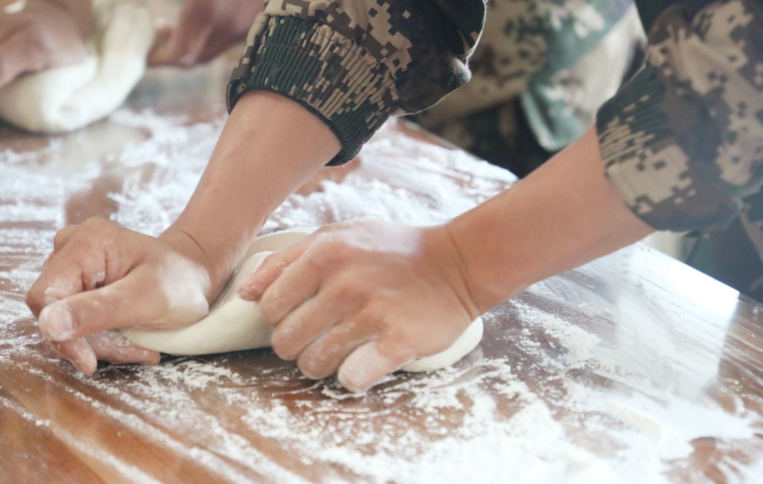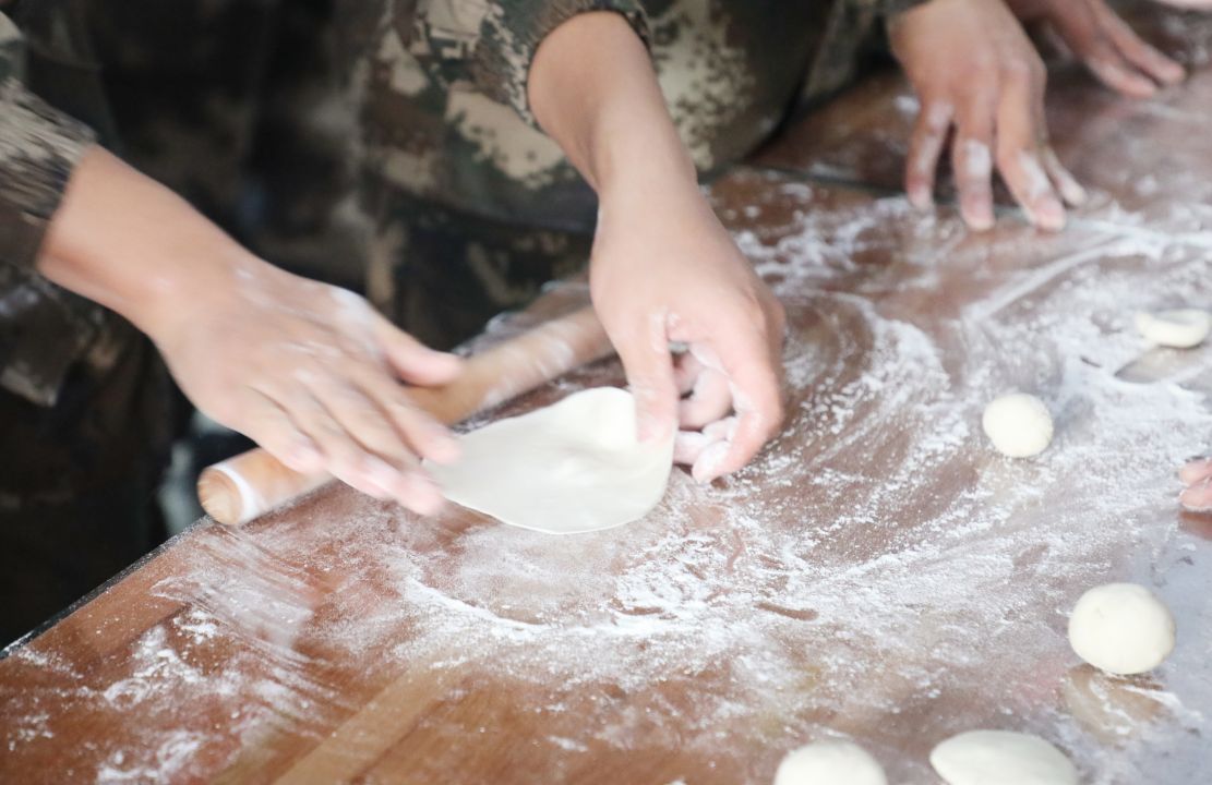 别以为兵哥哥只会手握钢枪,就连包饺子这种技术活,水平也是一级棒!切菜、剁馅、揉面……在制作现场,官兵们分工合作,忙得不亦乐乎。不一会儿,一个个饺子在官兵手中成形,韭菜鸡蛋的、猪肉大葱的、白菜大肉的……满足了战士们来自天南地北的味蕾。
