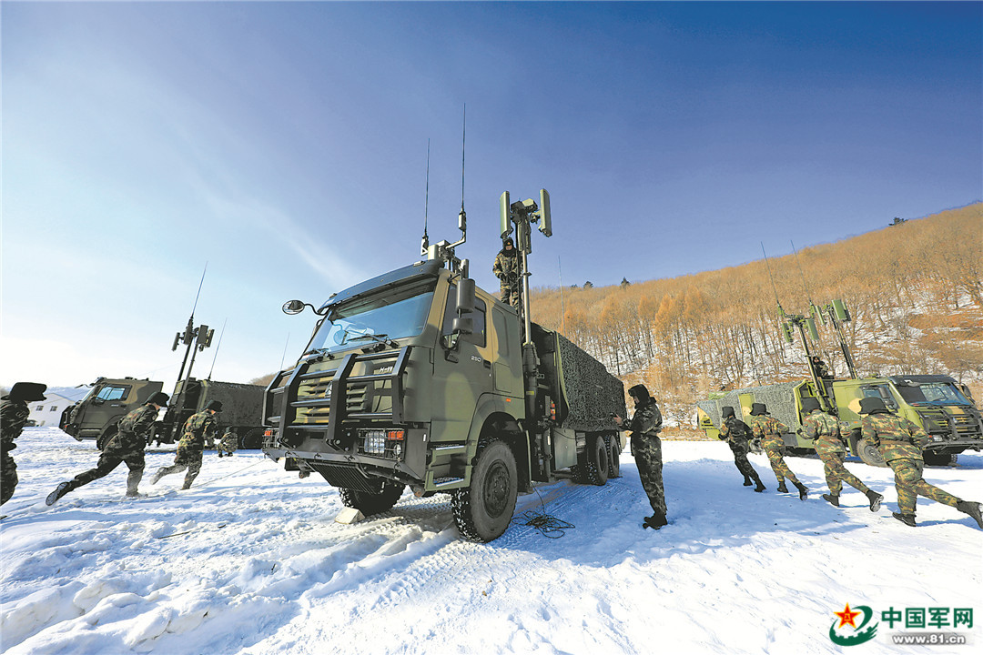 1月4日,火箭军某旅通信分队在冰天雪地中组织实装操作训练。陈 浩摄