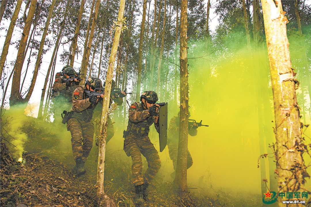 1月4日,武警广西总队贺州支队组织山林地捕歼战斗演练。张毕海摄