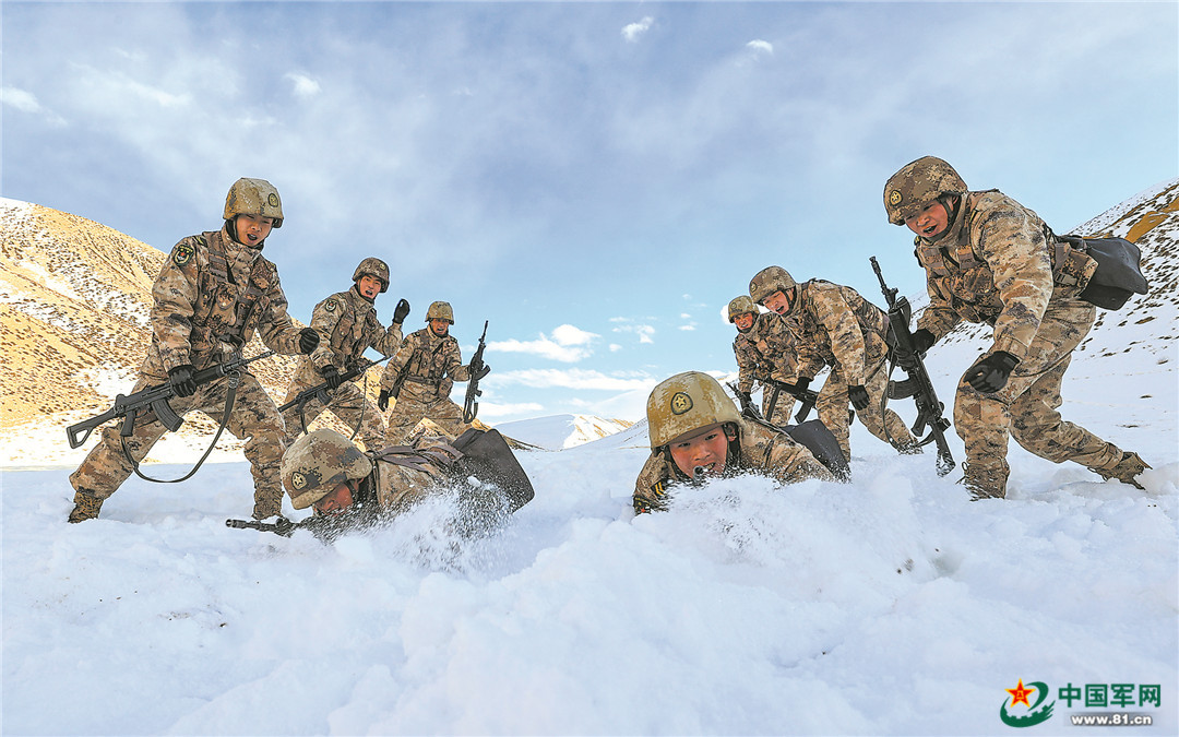 1月4日,陆军某团官兵在雪地中开展单兵战术比武。刘晓东摄