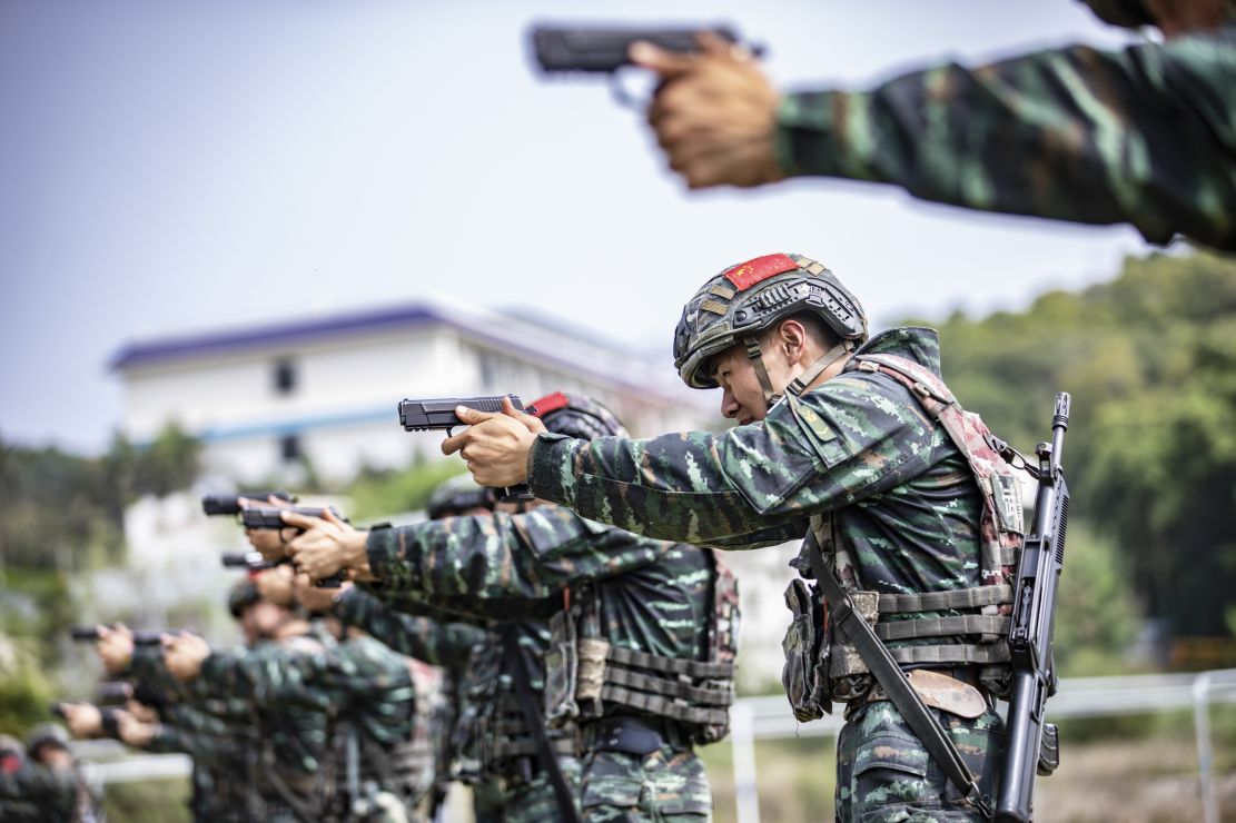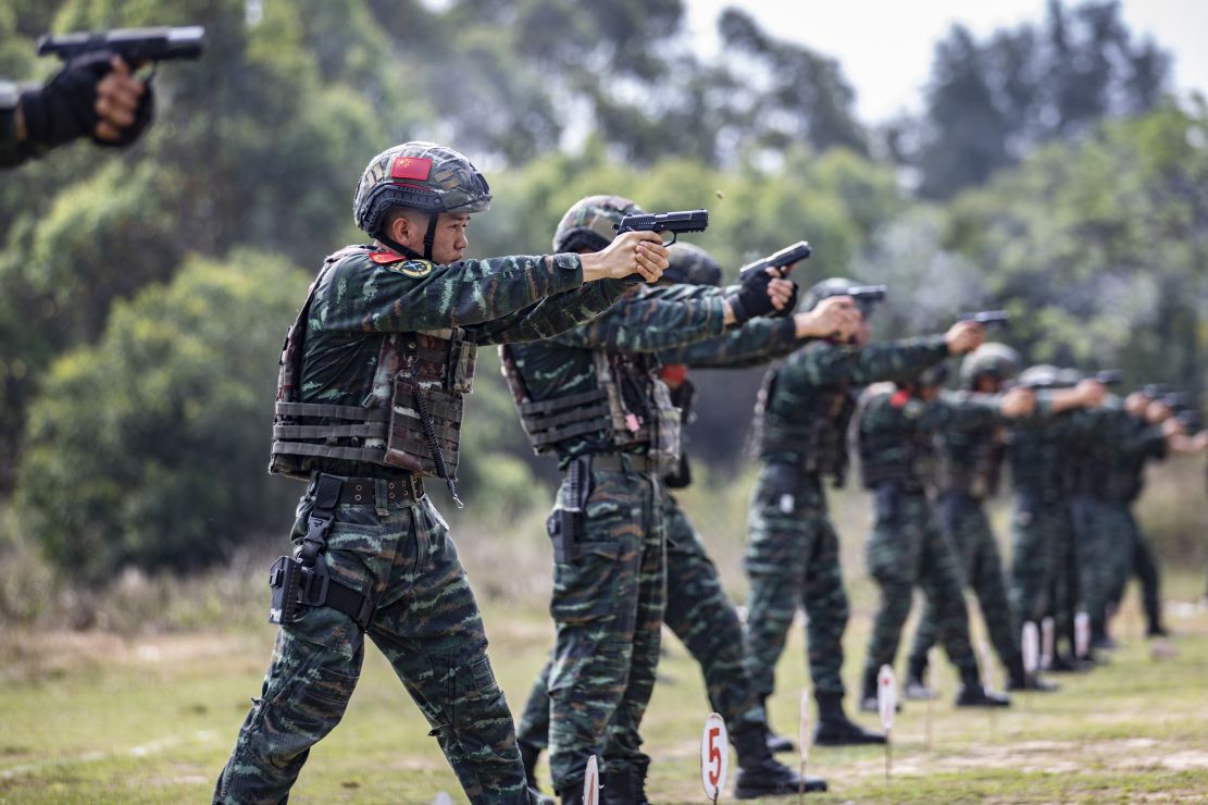 央视网消息:近日,武警广西北海支队组织特战队员进行手步枪精度射击、多种姿势转换射击、枪种转换射击等课目的训练,在实弹、实训、实练的氛围中锤炼官兵制胜本领,为今后遂行多样化任务奠定坚实基础。(梁承杰、余海洋)