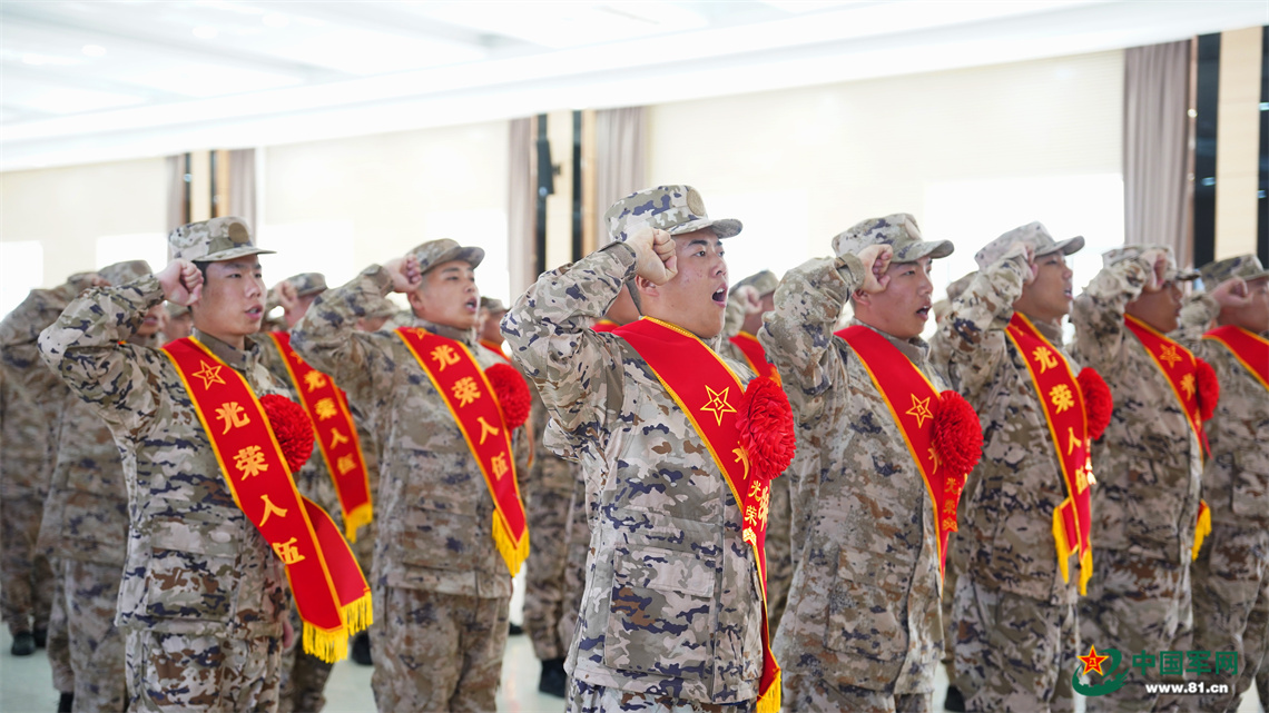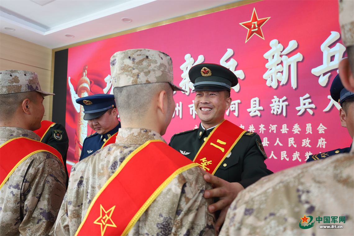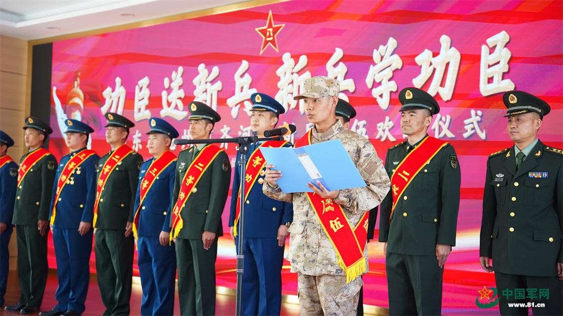 聆听功臣故事,新兵们信心满怀。“功臣代表为我们送行,让我们倍感荣耀,我们一定不负嘱托,时刻以他们为榜样,勤学苦练、建功军营!”新兵杨敬红说。随后,全体新兵胸戴红花,身披绶带,精神抖擞,铿锵宣誓。