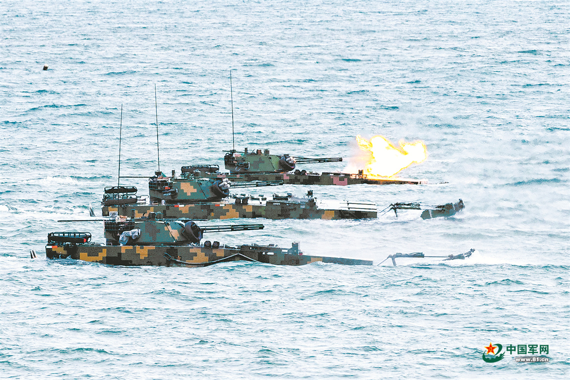 陆军某旅组织两栖装甲车实弹射击训练