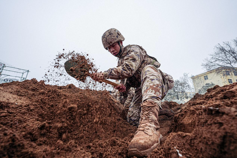 ↑武警山西总队某支队组织阵地构设课目训练