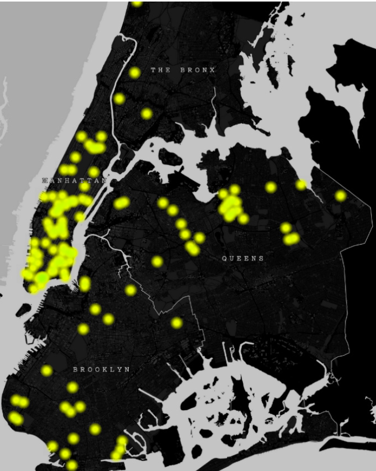 2020年2月至2021年4月美国纽约反亚裔案件热点图。图源:《“美国第一”?!美国抗疫真相》报告