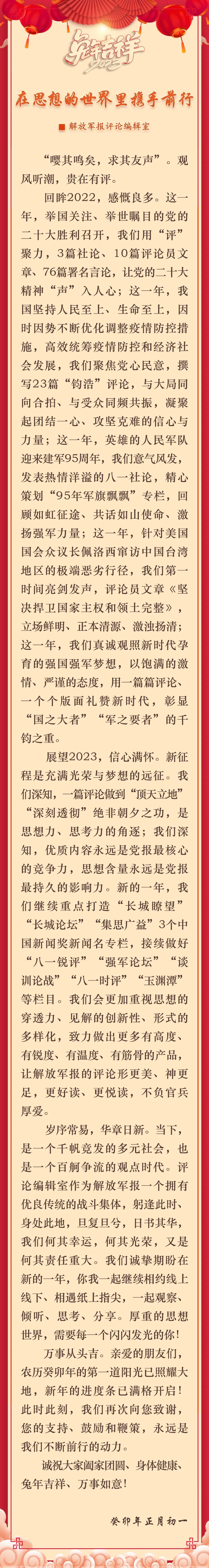 军报评论编辑室:在思想的世界里携手前行