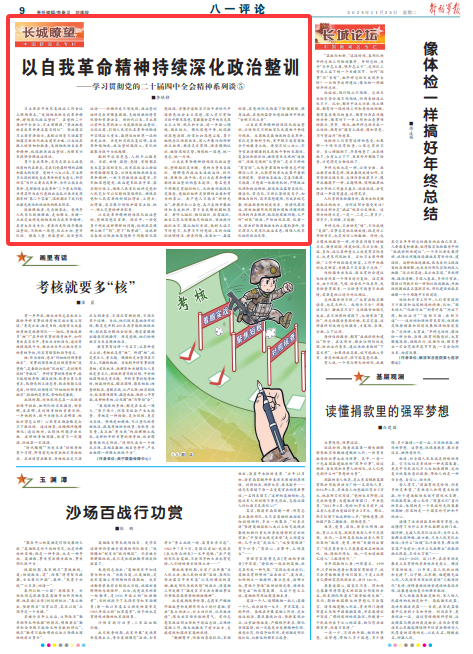 习主席在中央军委政治工作会议上明确要求,“发扬彻底的自我革命精神,持续深化政治整训”。在党的二十届四中全会上,习主席强调,“坚决把党的自我革命要求落实到位”。坚决落实习主席重要指示,各级必须毫不动摇贯彻落实新时代政治建军方略,以永远在路上的坚韧和执着,发扬彻底的自我革命精神,纵深推进政治整训,为强军兴军提供坚强政治保证。