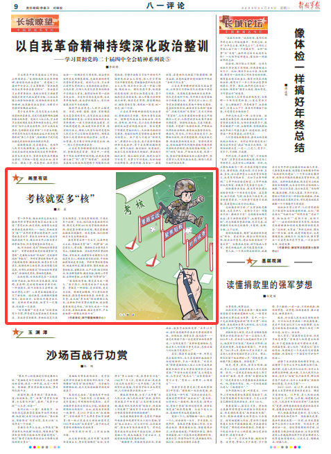 核,作为动词,意为“仔细地对照考察核实”。军事训练考核是训练质量的“度量衡”,是备战打仗的“风向标”,是训练作风的“导航仪”。年终军事训练考核中,能不能超越考场、瞄准战场,既考全员又考重点,既静态测又动态考,既出难题又设危局,对部队训练情况“仔细地对照考察核实”,检验的是考风,影响的是备战。