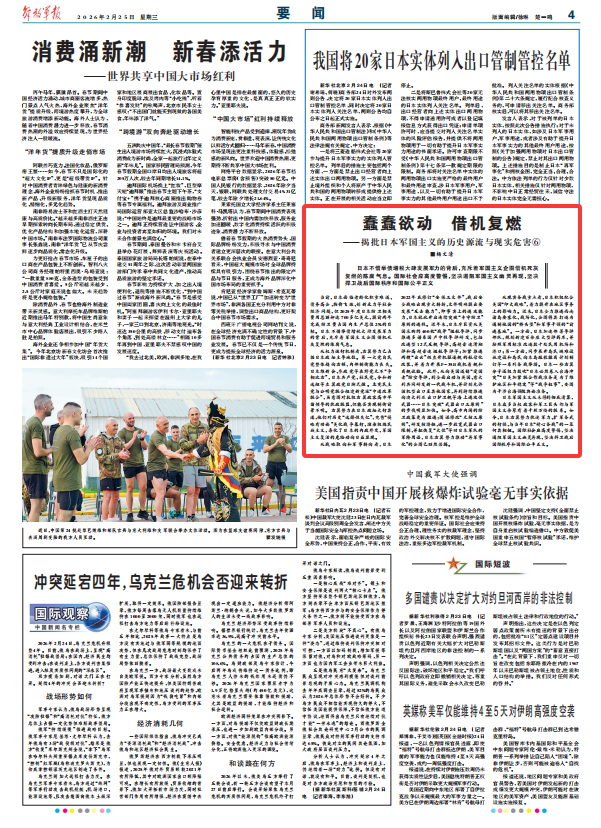 日本军国主义从未得到彻底清算,日本众多当权政客和军工巨头都与军国主义余孽有着千丝万缕的联系。如今,日本右翼势力执迷军力、扩军备武的行径,与当年日本“精心备战”的一幕何其相似。国际社会应高度警惕,坚决遏阻军国主义幽灵再现,坚决捍卫战后国际秩序和国际公平正义。