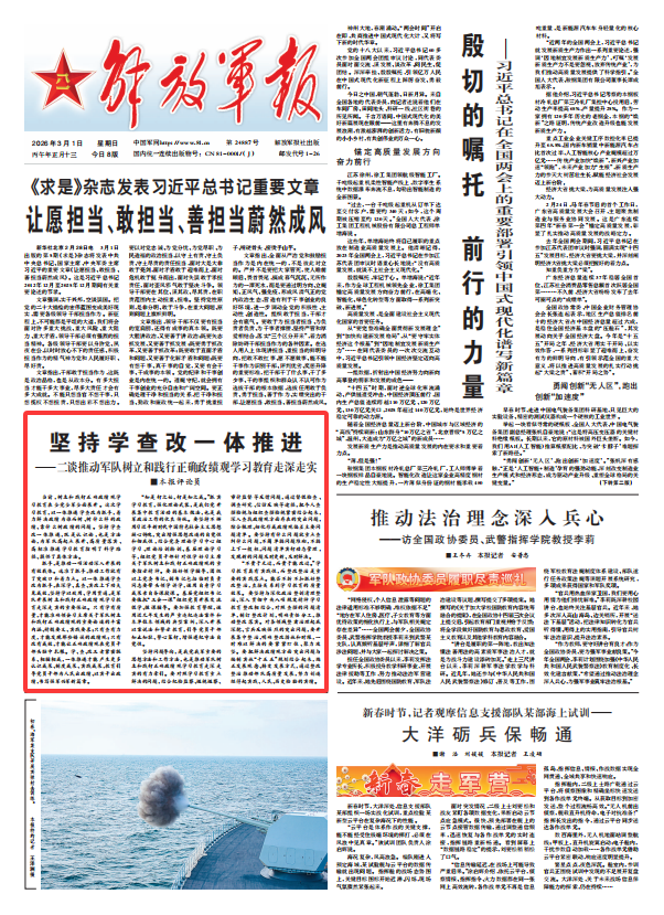 解放军报评论员:坚持学查改一体推进