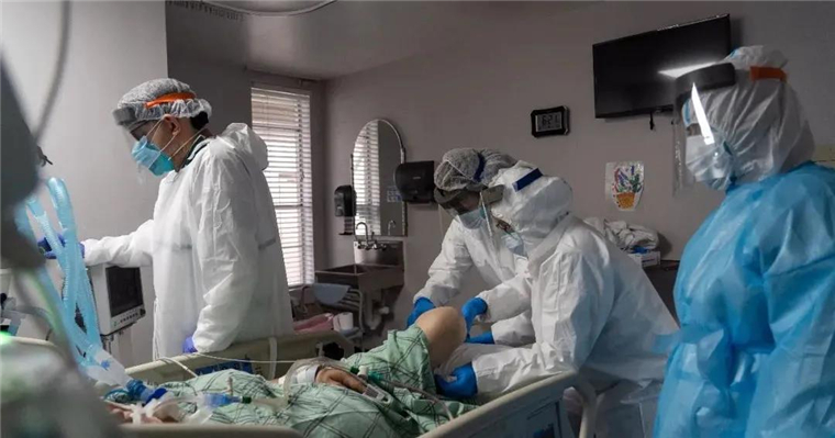 △美国得克萨斯州休斯敦联合纪念医疗中心新冠肺炎重症监护室