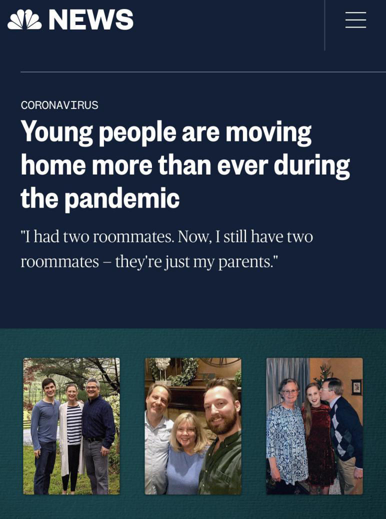 △NBC称,疫情导致回家“啃老”的年轻人创历史新高