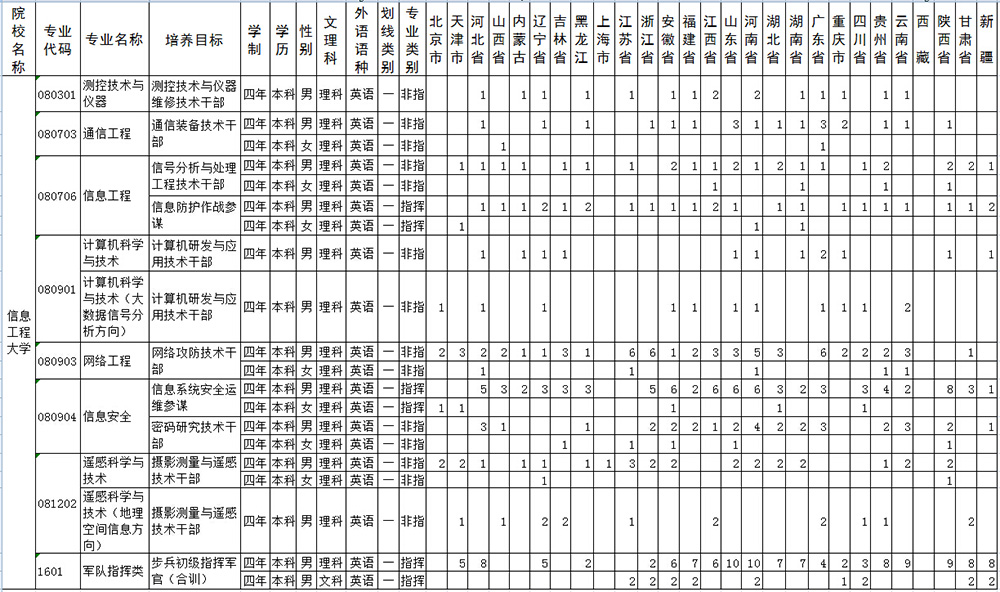 2015年解放军信息工程大学招生计划