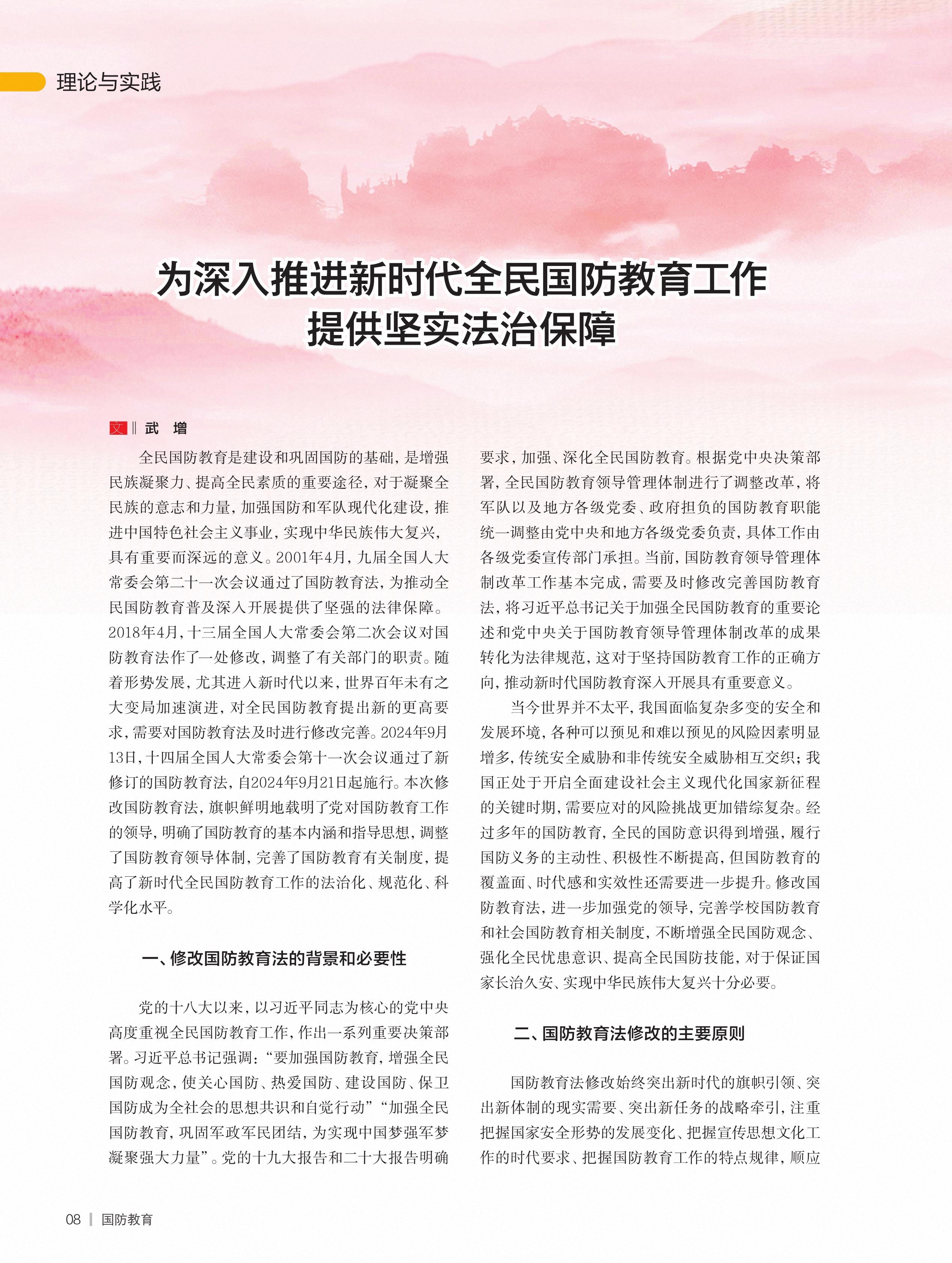 为深入推进新时代全民国防教育工作 提供坚实法治保障