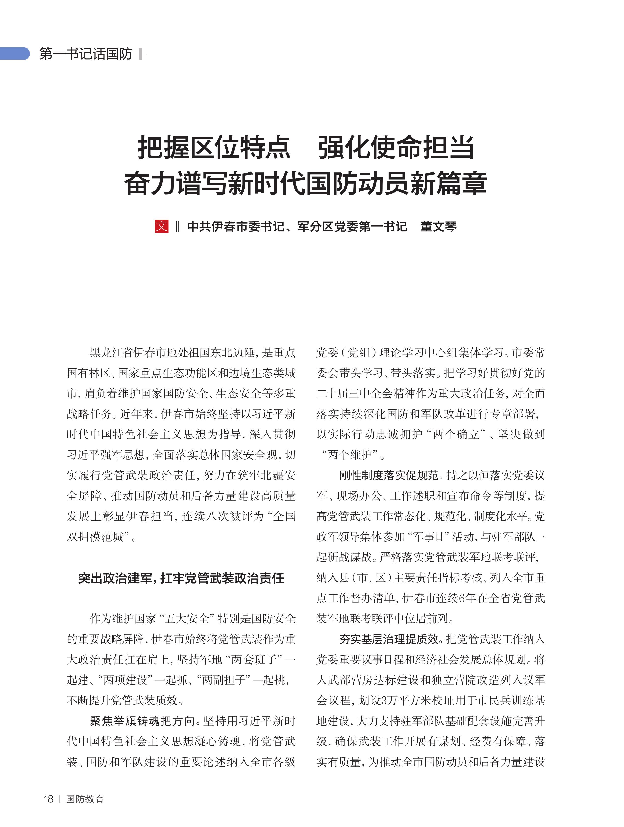 作者:中共伊春市委书记 军分区党委第一书记  董文琴