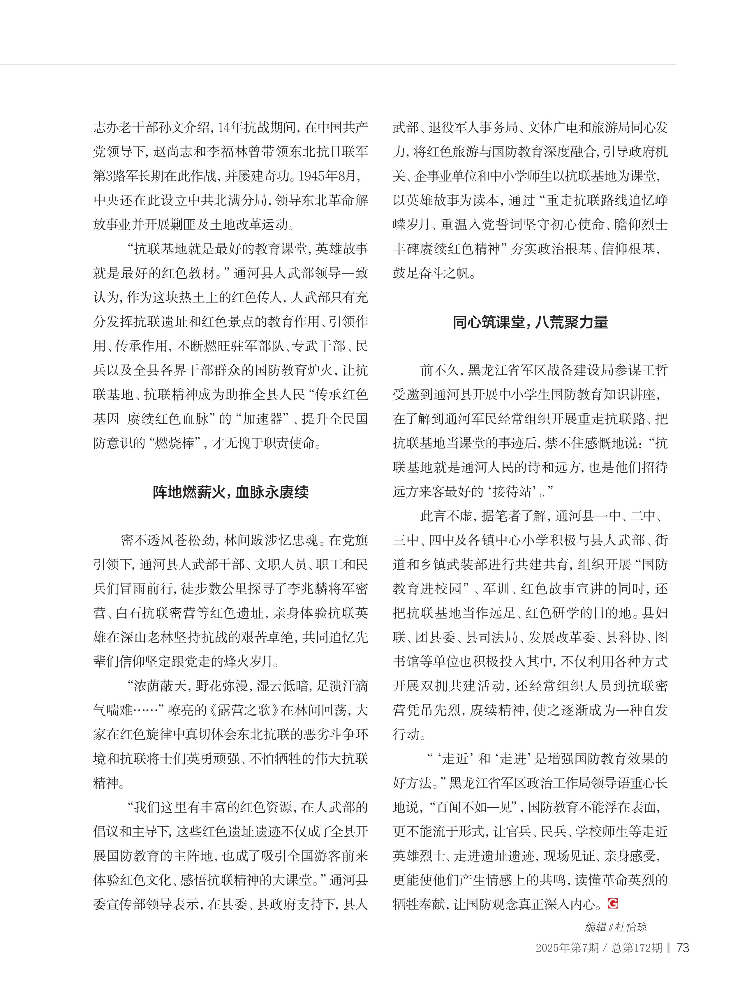 黑龙江省通河县人武部发挥东北抗联遗址作用提升全民国防教育质效——