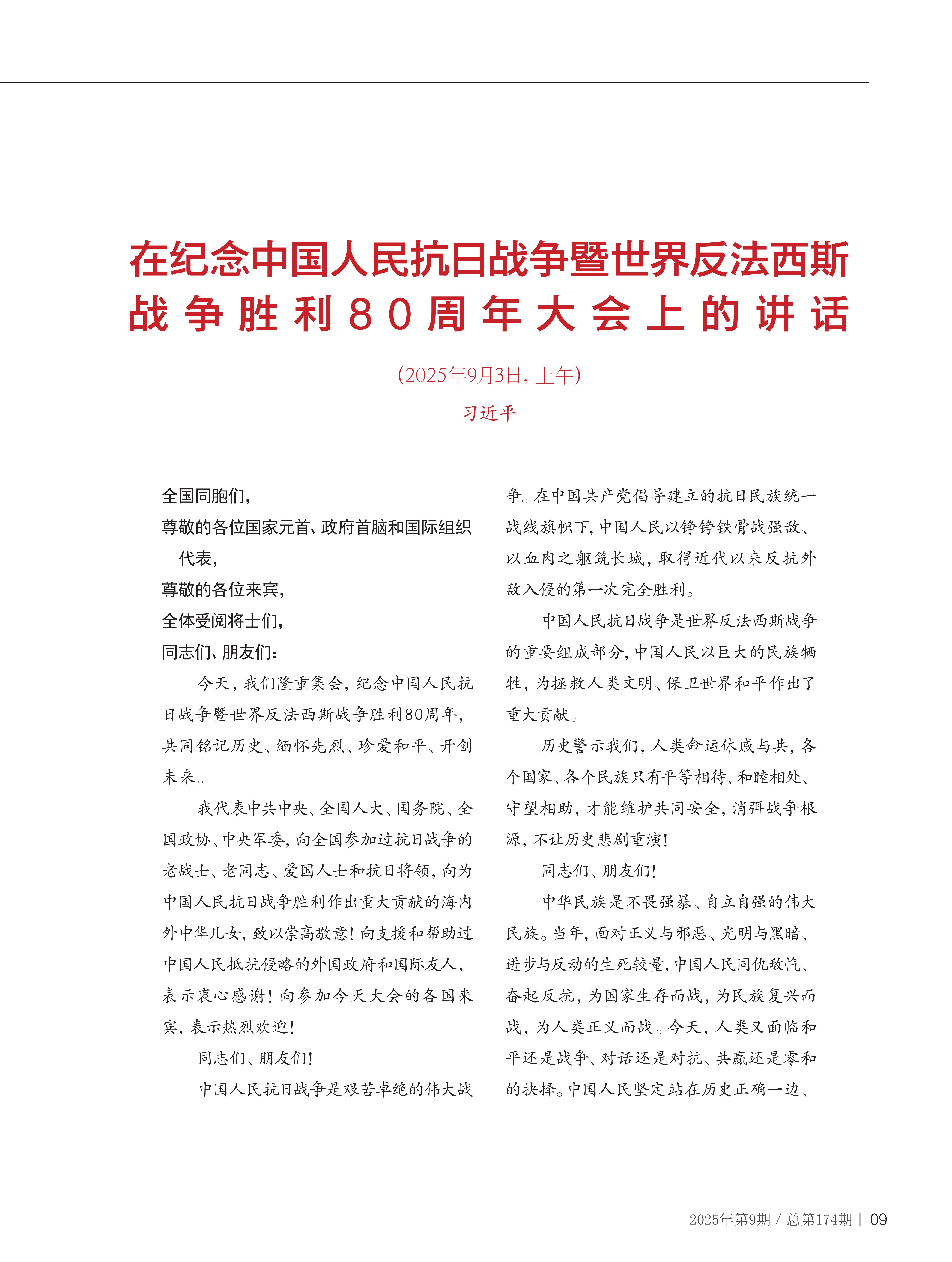在纪念中国人民抗日战争暨世界反法西斯战争胜利80周年大会上的讲话
