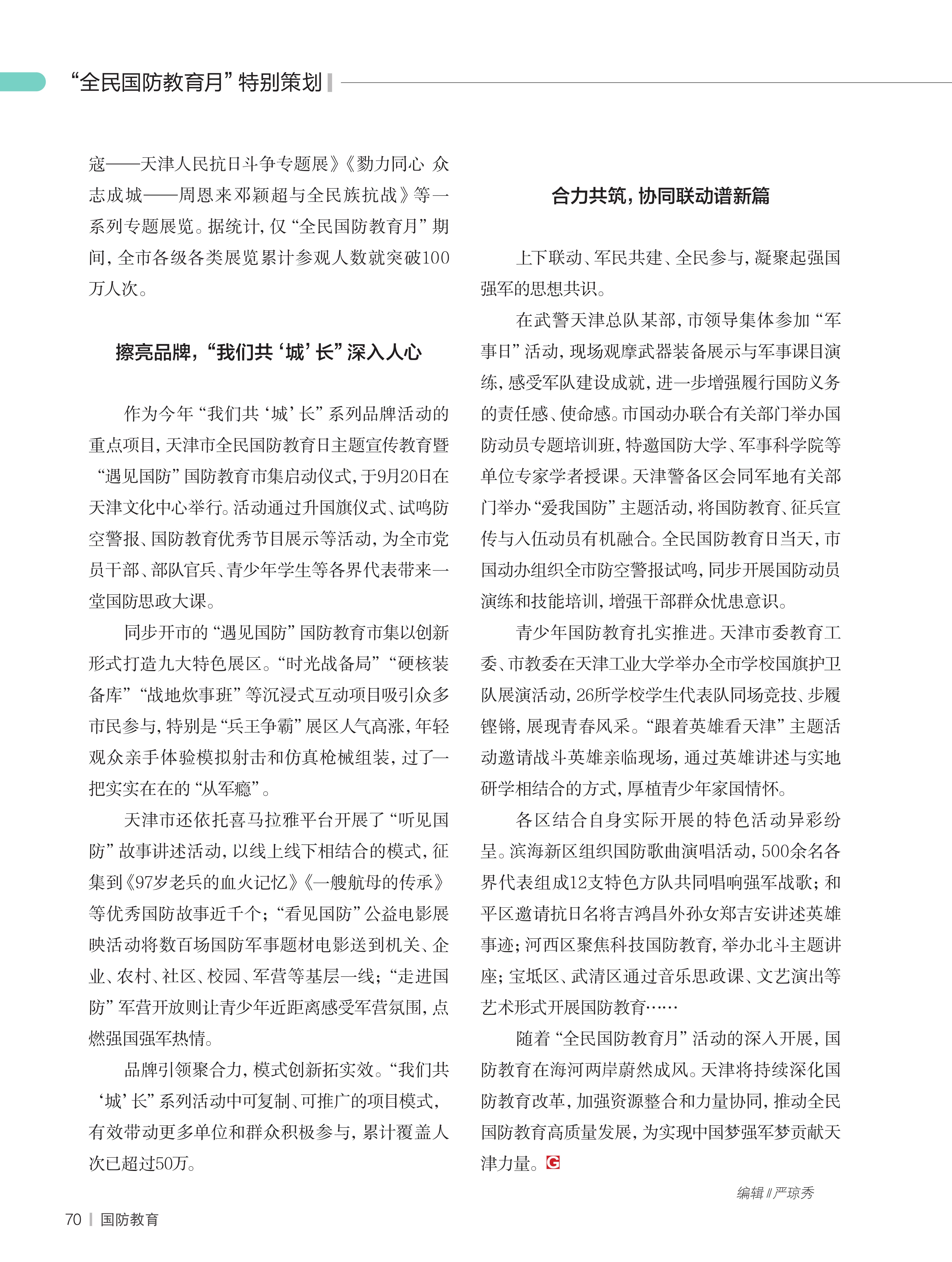 作者:中共天津市委宣传部宣传教育处(全民国防教育处)