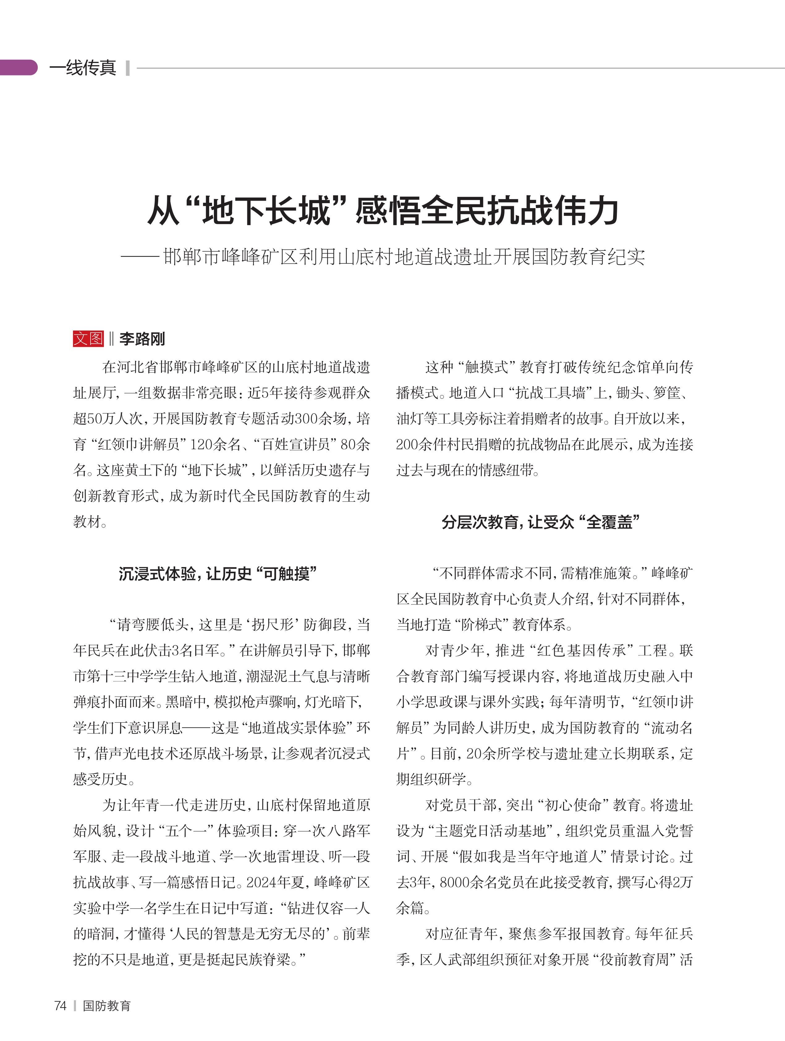 ——邯郸市峰峰矿区利用山底村地道战遗址开展国防教育纪实