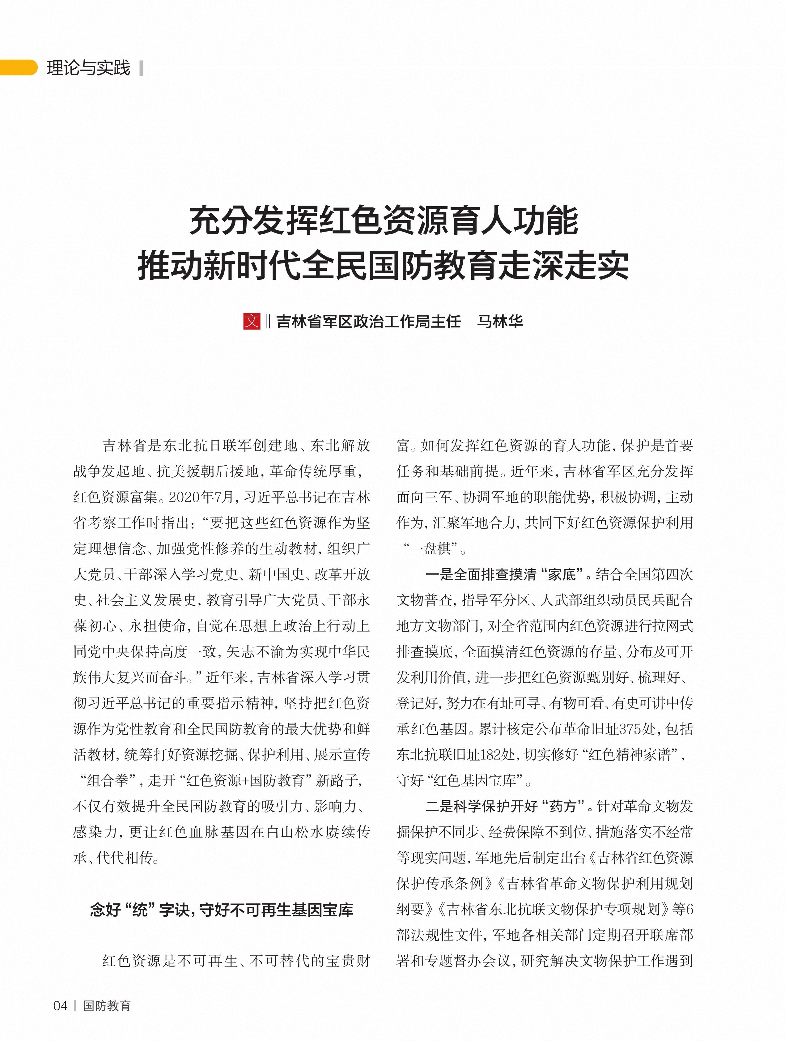 作者:吉林省军区政治工作局主任  马林华