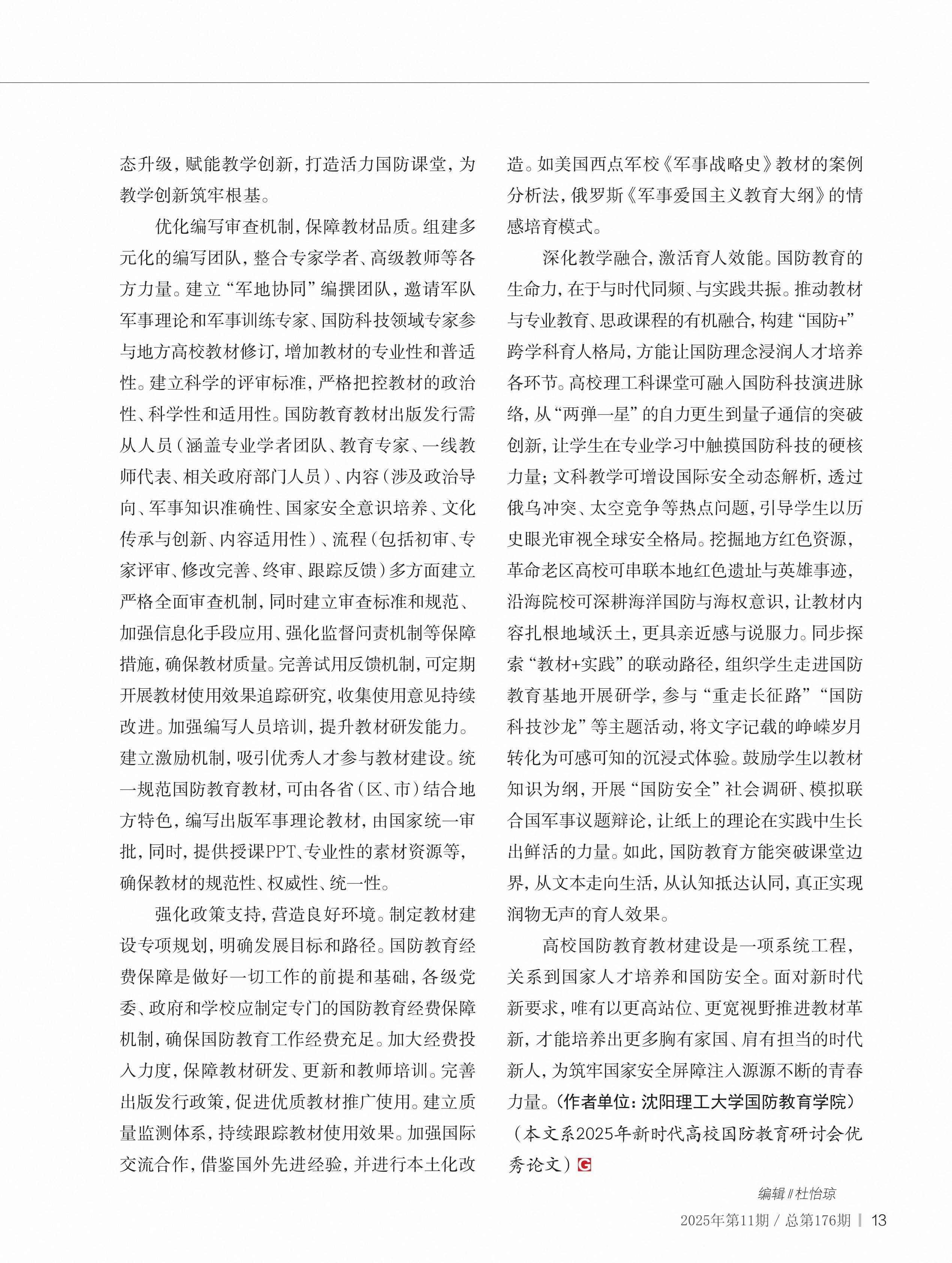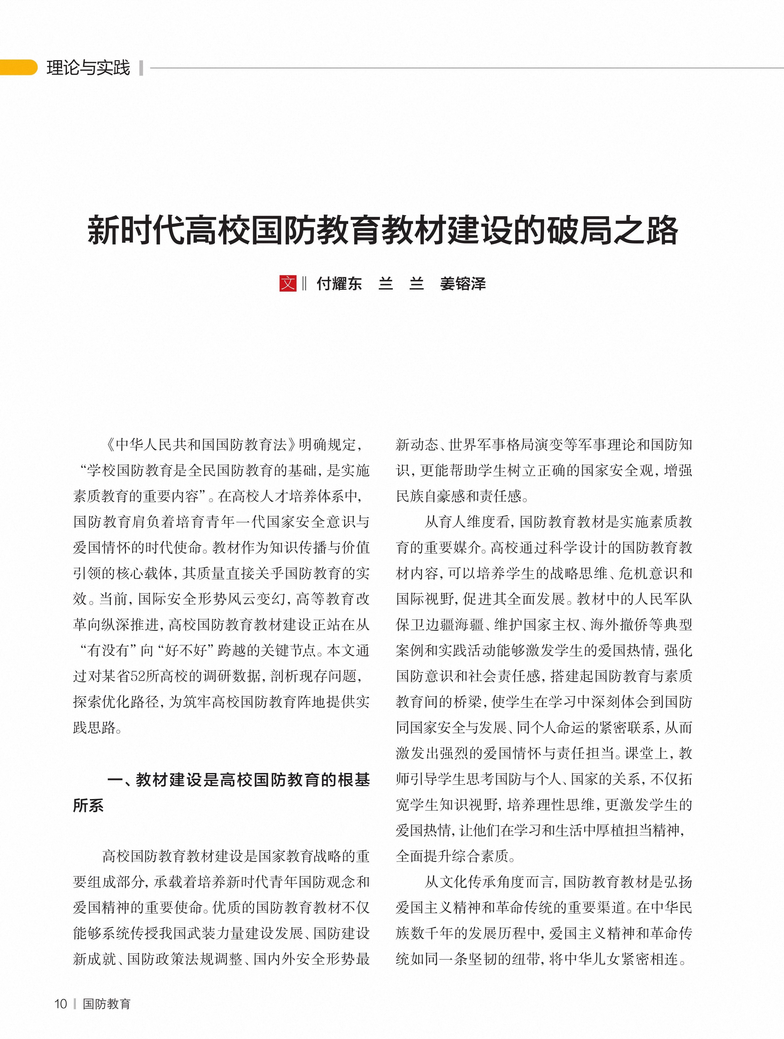 新时代高校国防教育教材建设的破局之路
