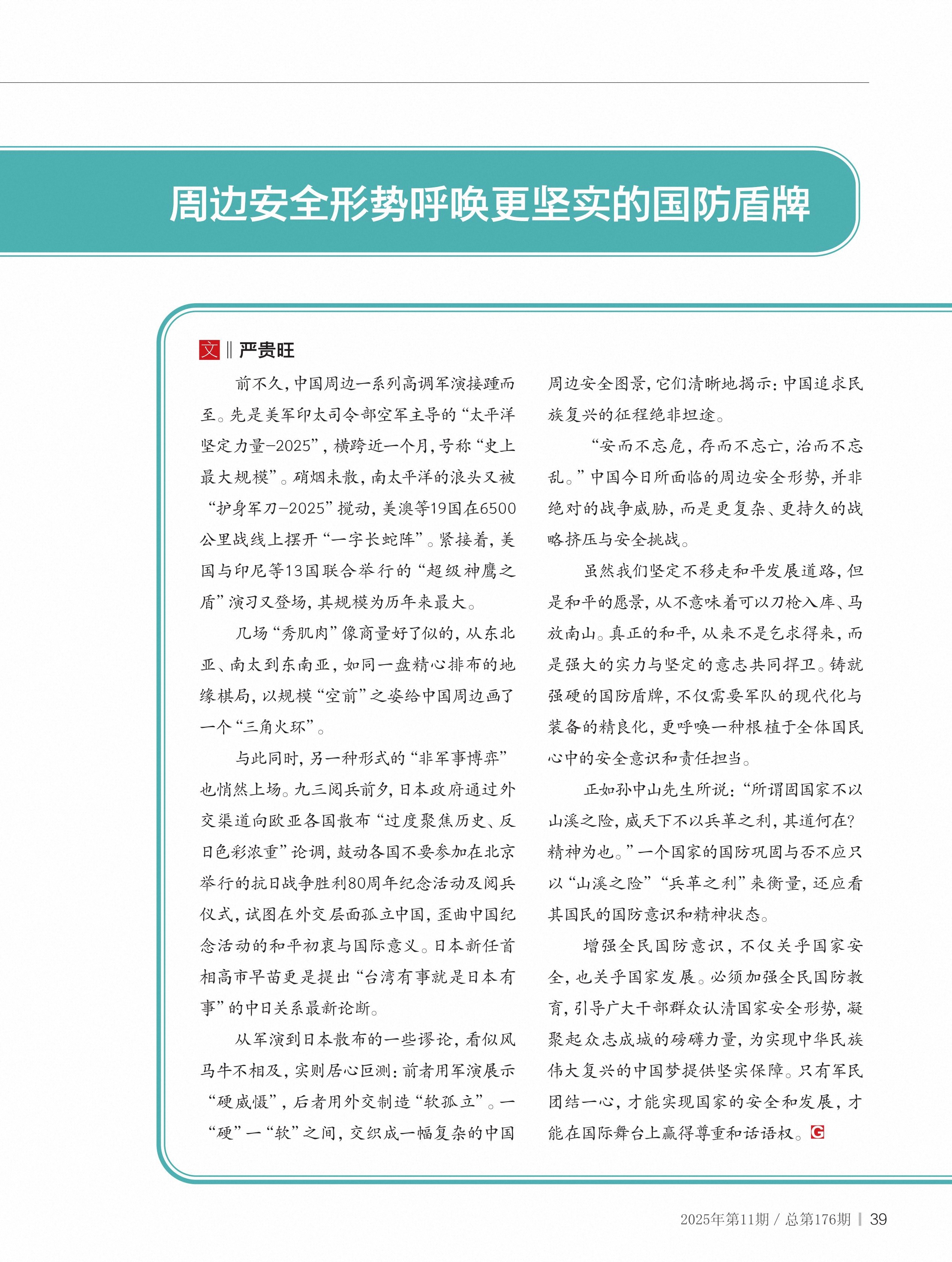 周边安全形势呼唤更坚实的国防盾牌