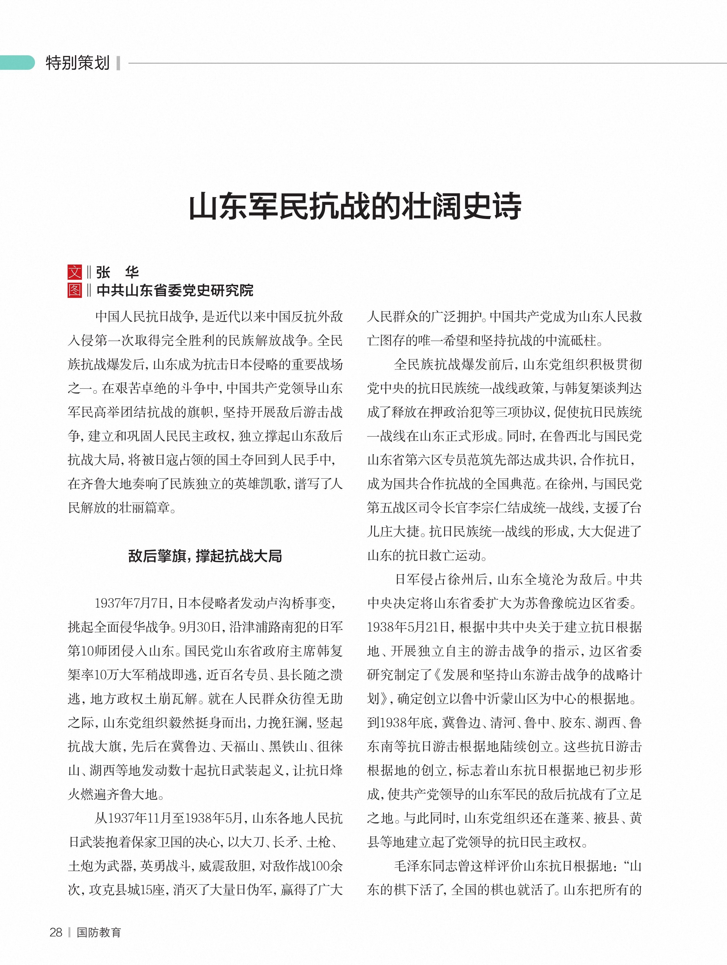 山东军民抗战的壮阔史诗