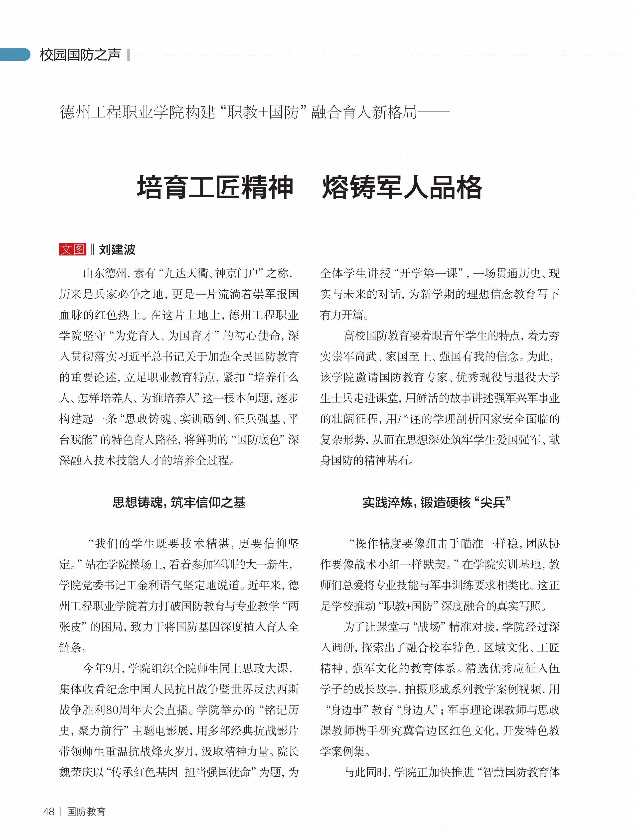 德州工程职业学院构建“职教+国防”融合育人新格局——