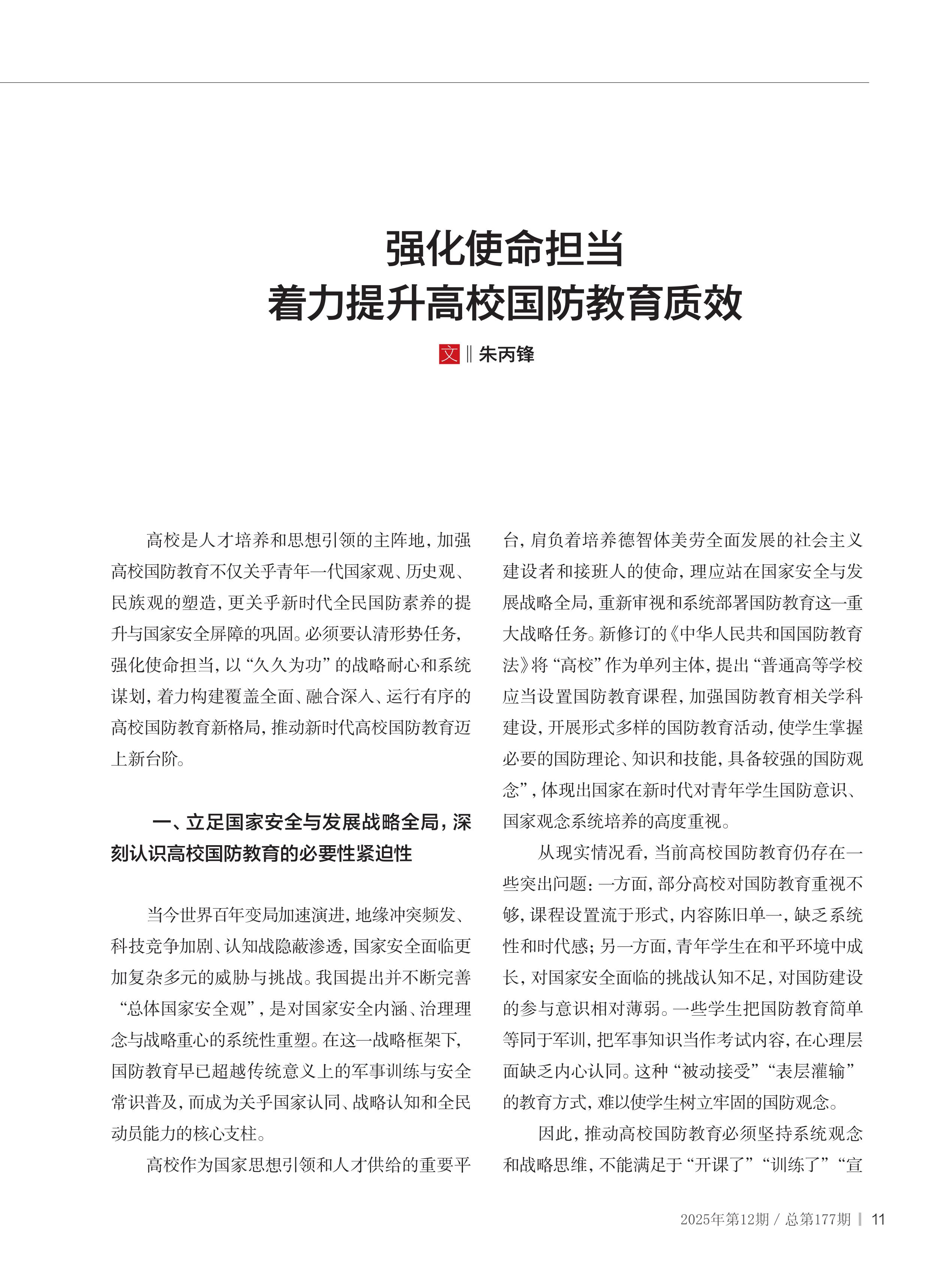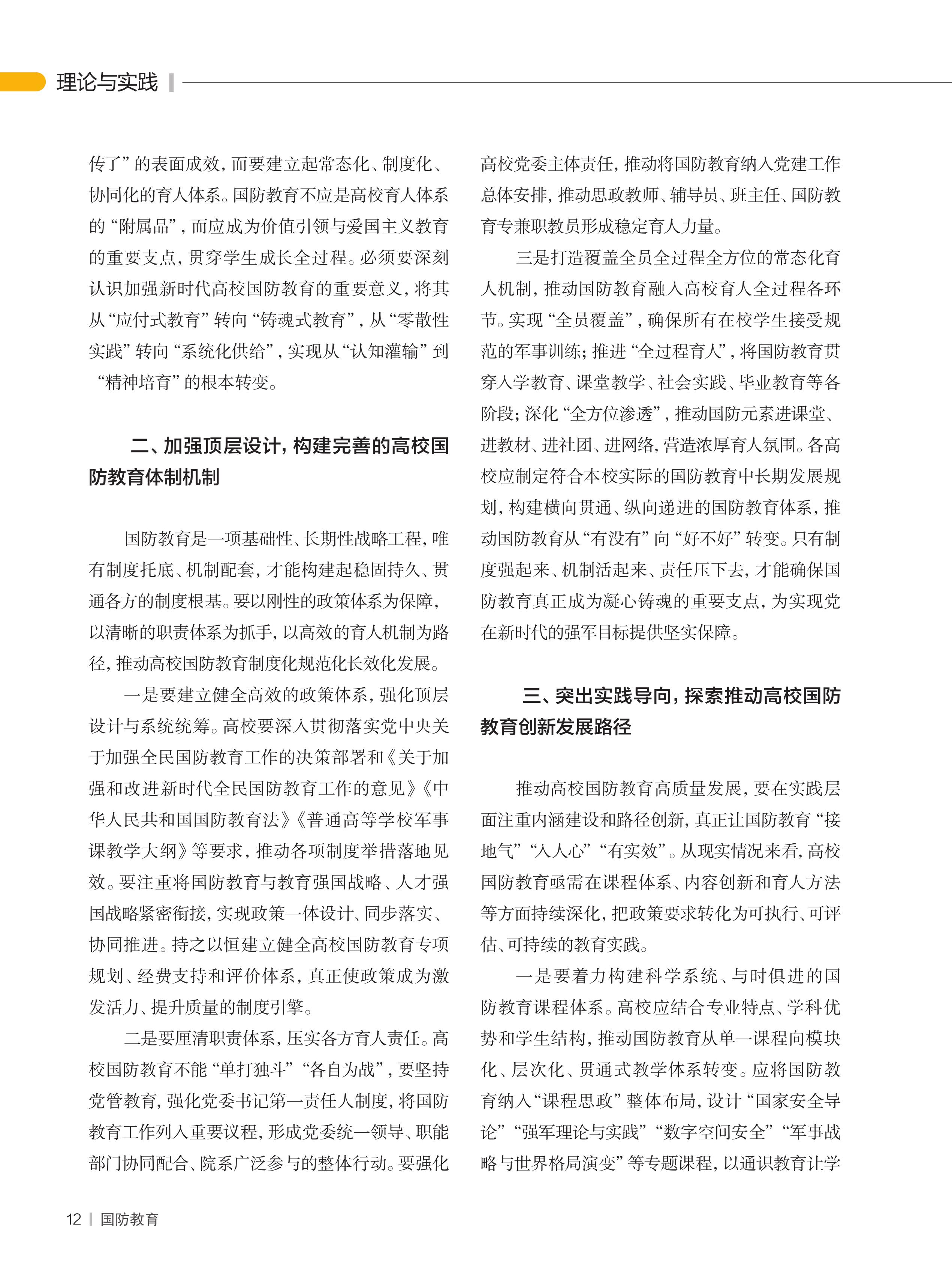 着力提升高校国防教育质效