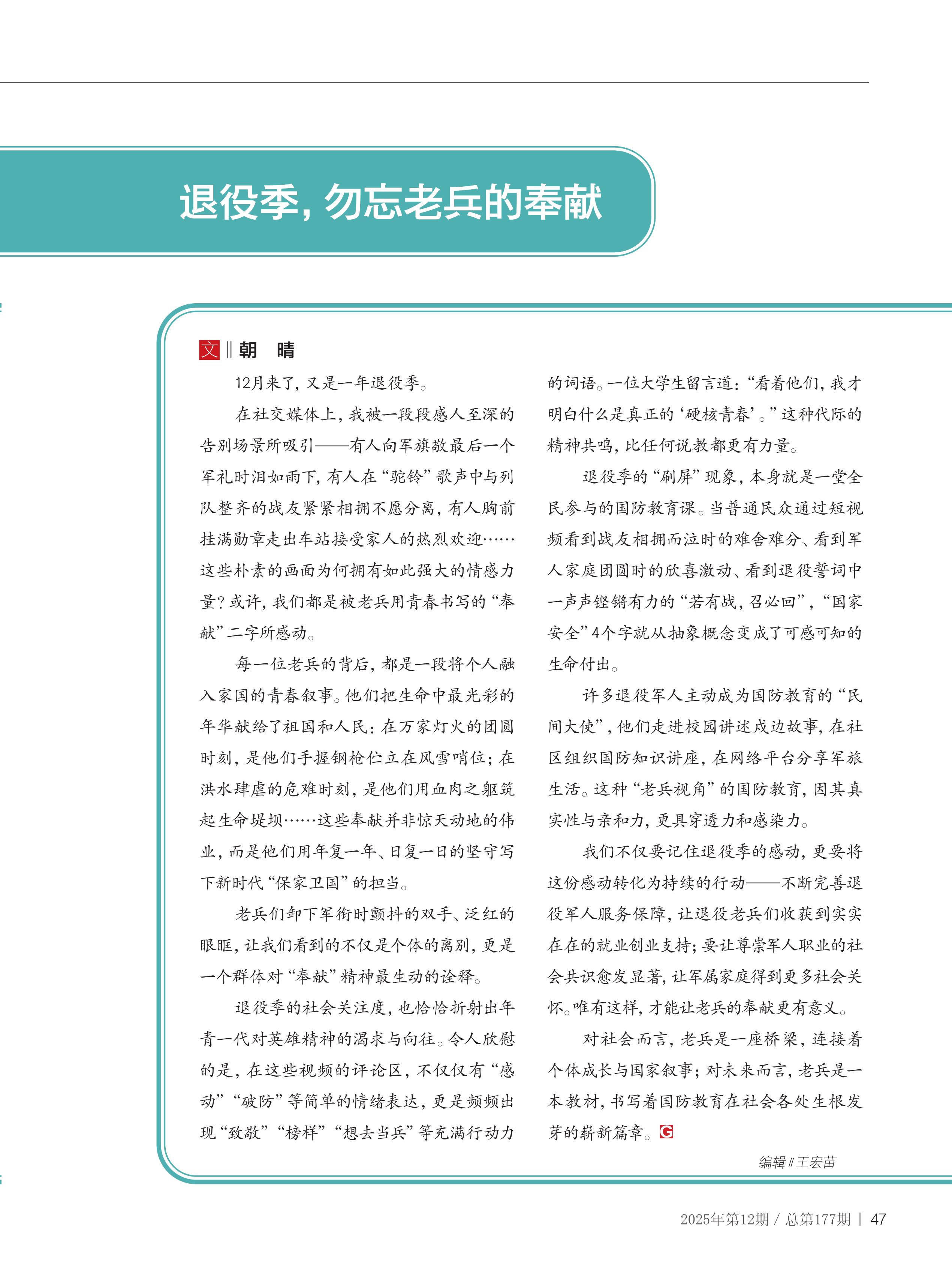 退役季,勿忘老兵的奉献