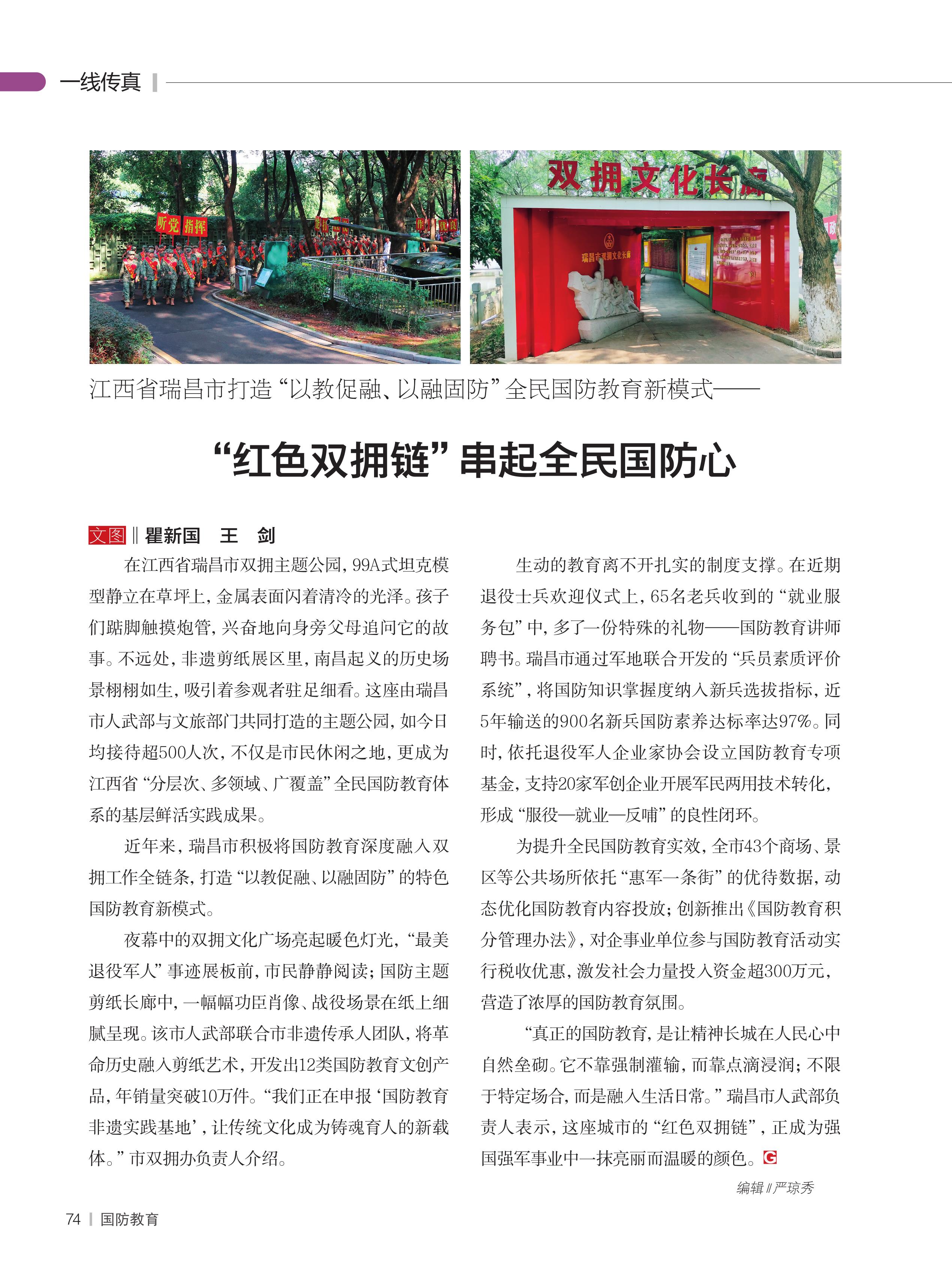 江西省瑞昌市打造“以教促融、以融固防”全民国防教育新模式——