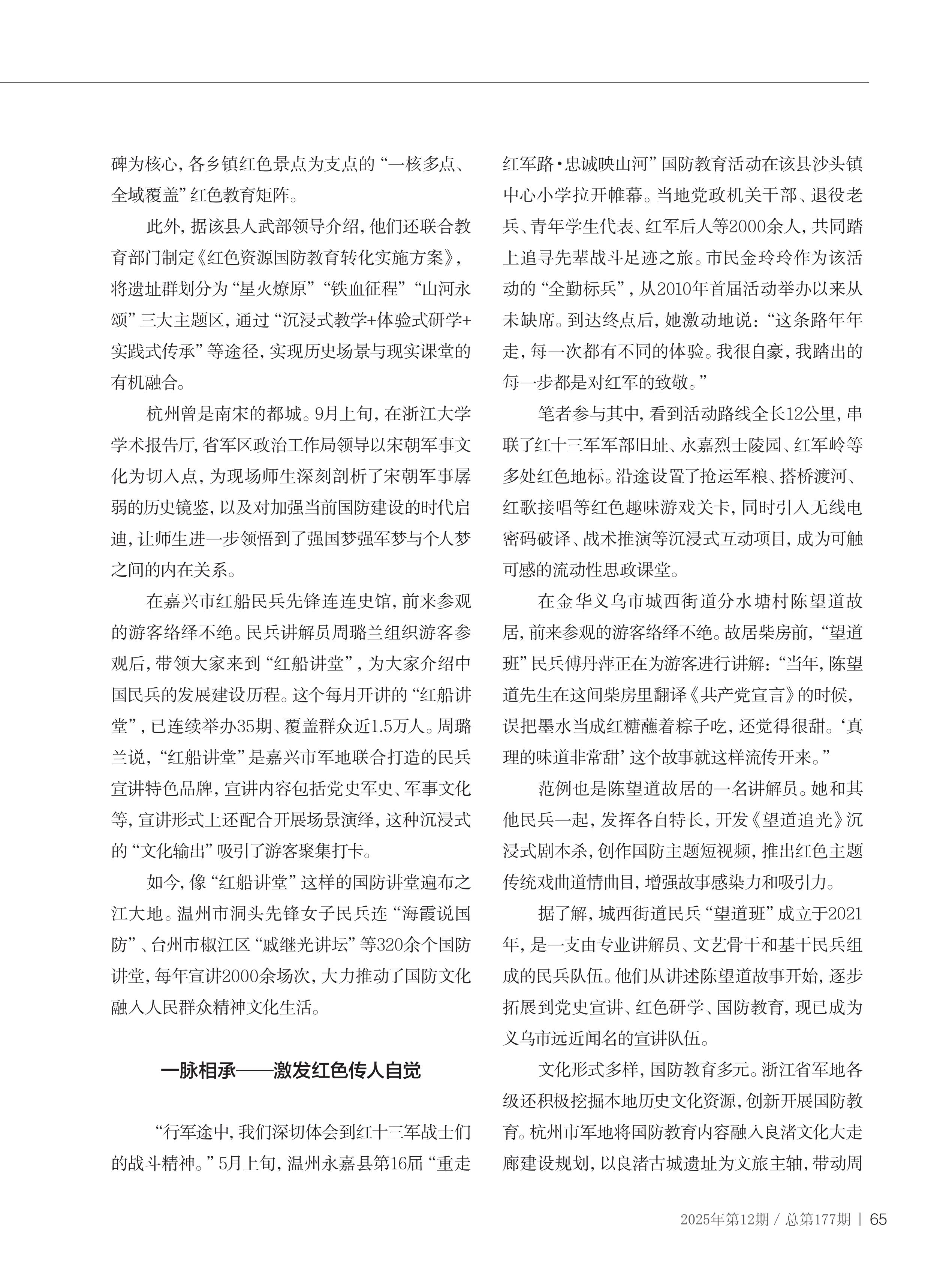 浙江省军地深入挖掘运用红色文化资源深化全民国防教育——