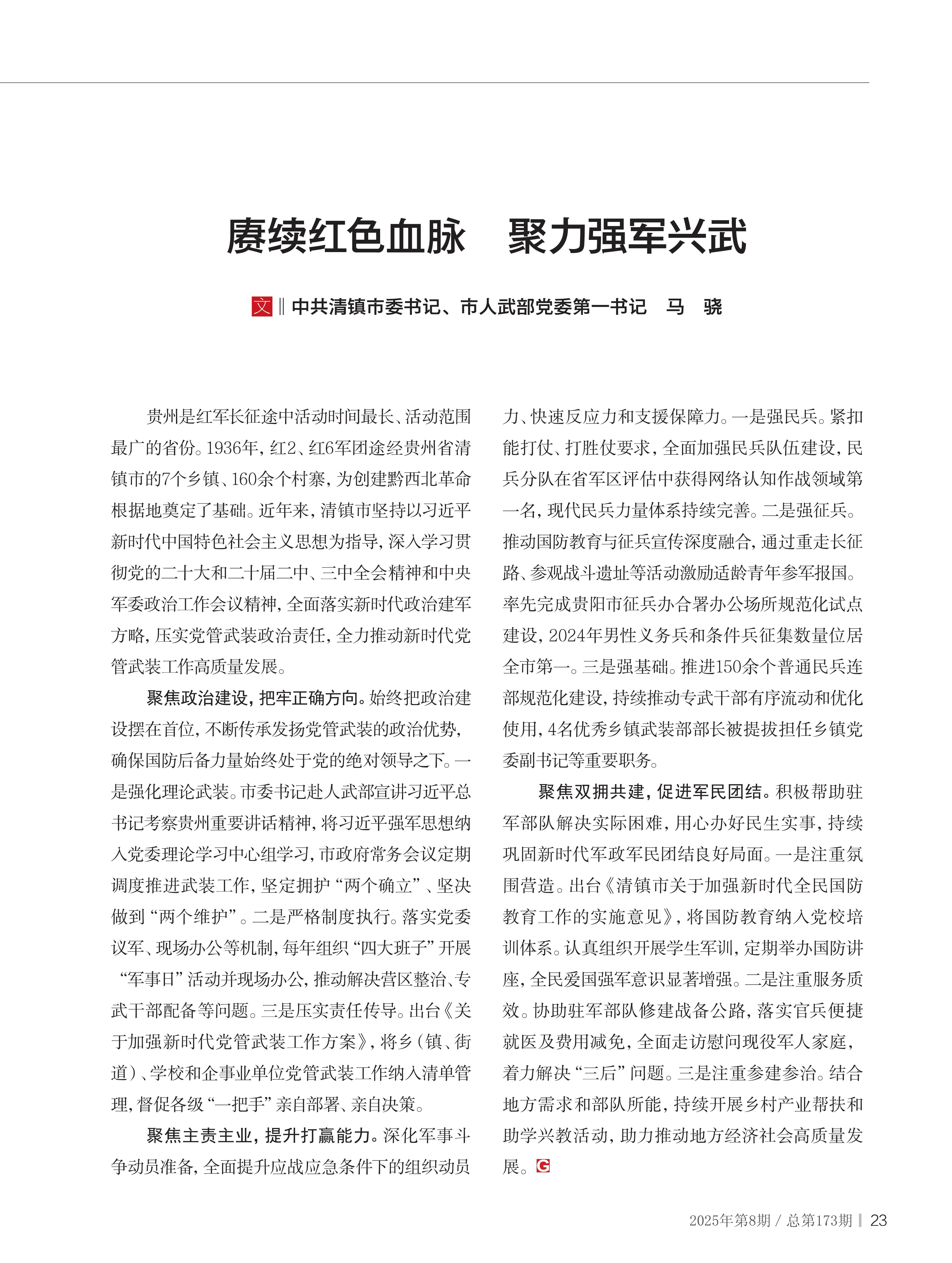 作者:中共清镇市委书记 市人武部党委第一书记  马  骁