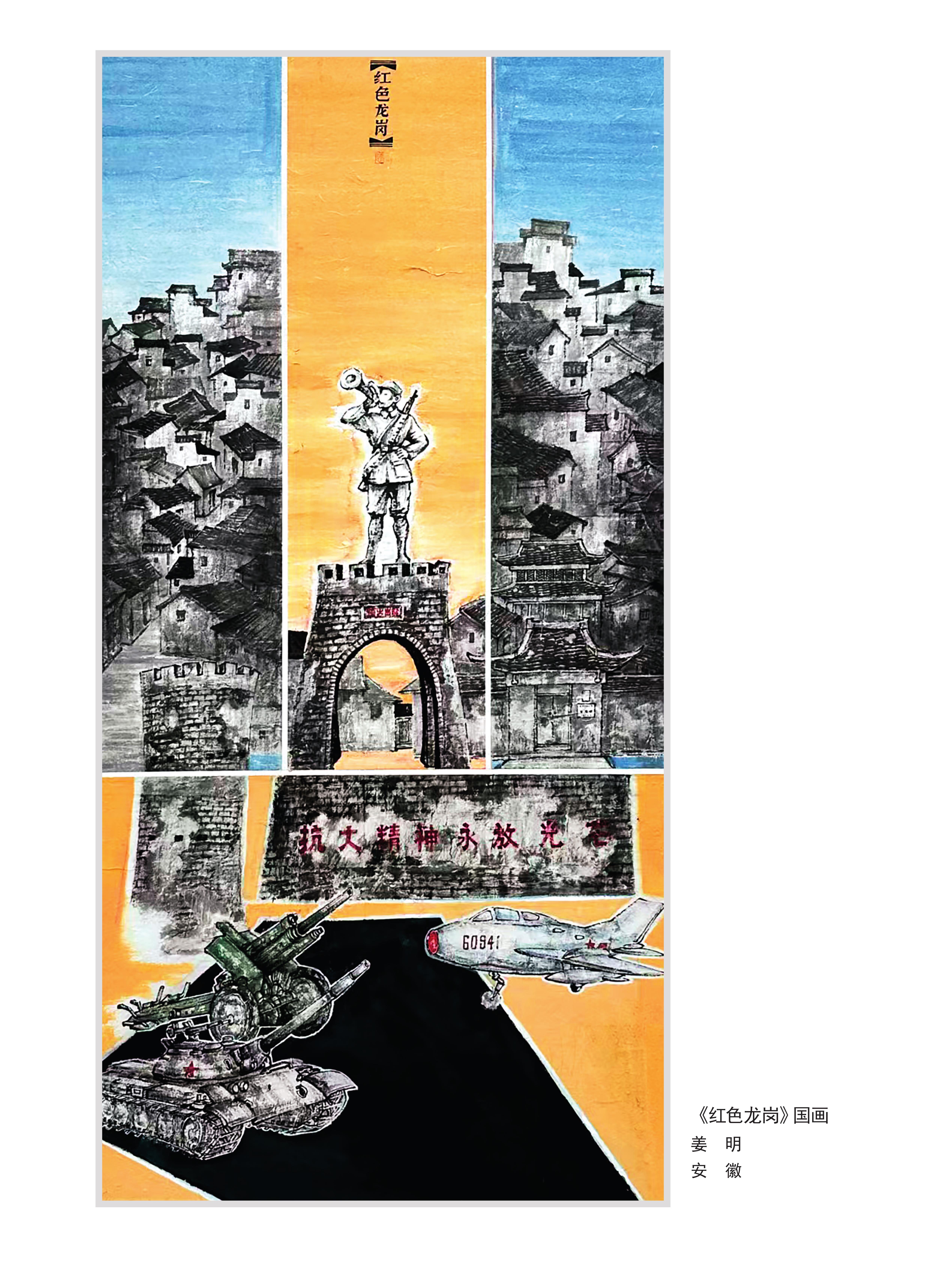 《红色龙岗》国画