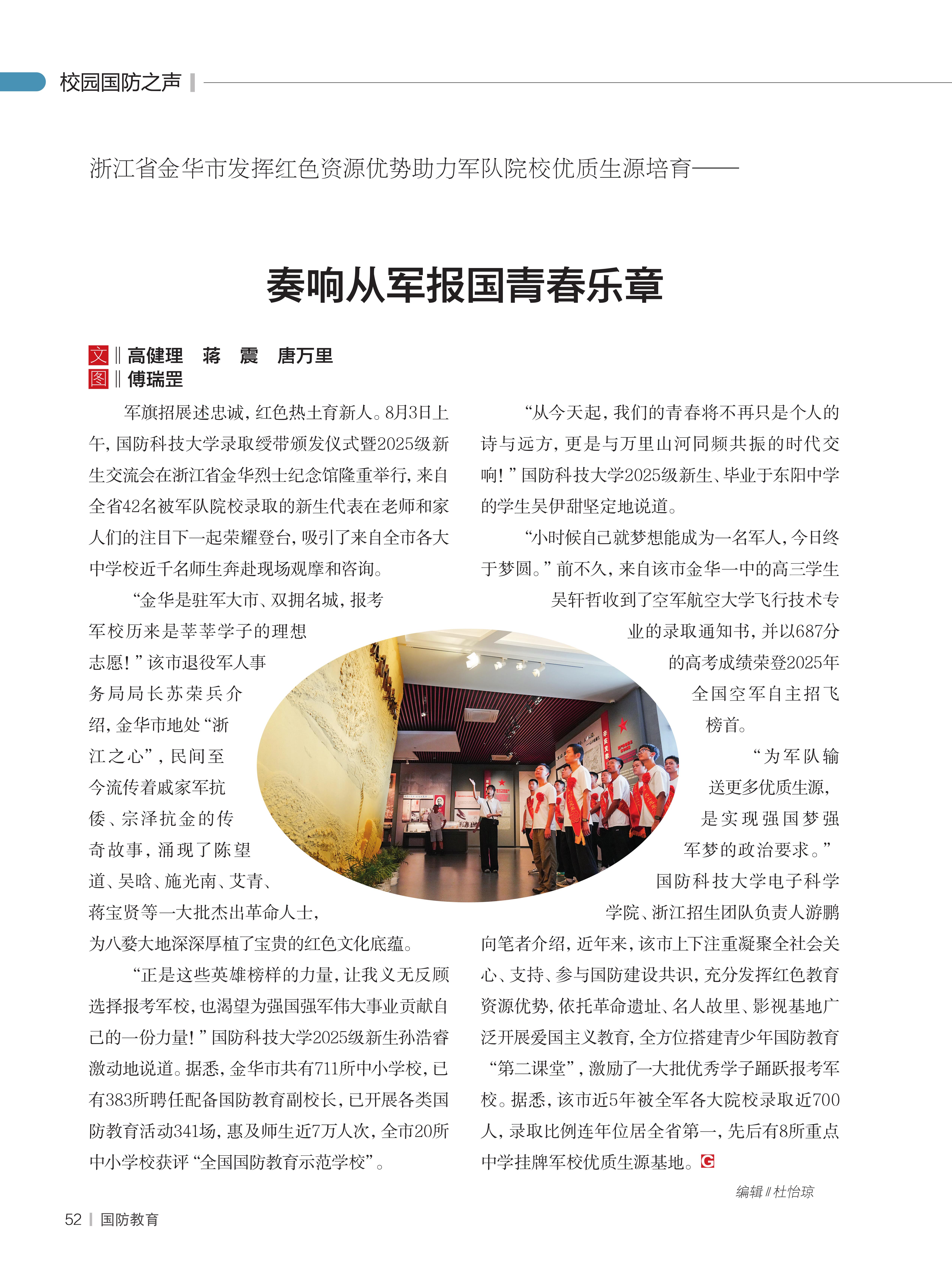 浙江省金华市发挥红色资源优势助力军队院校优质生源培育——
