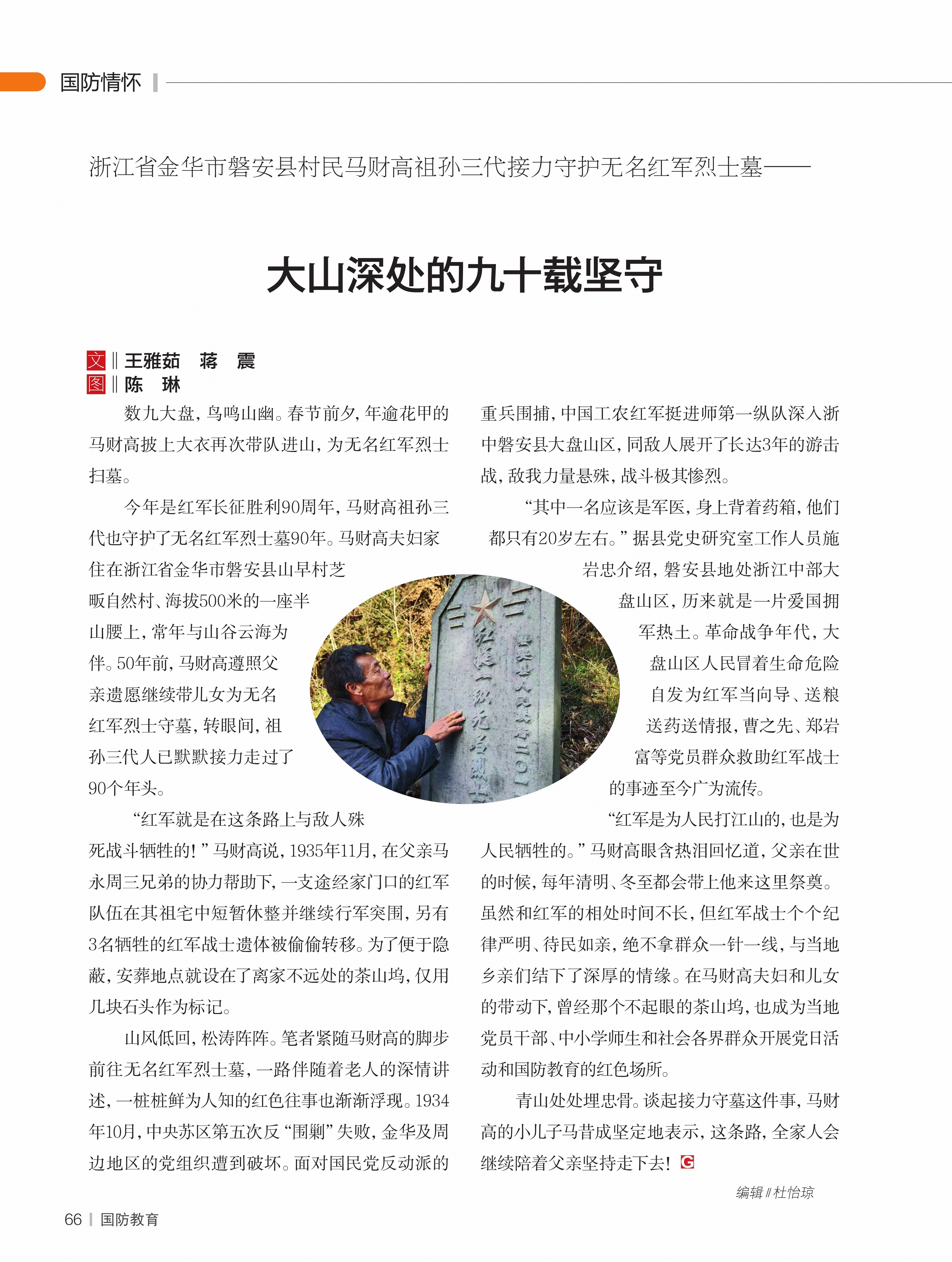 浙江省金华市磐安县村民马财高祖孙三代接力守护无名红军烈士墓——