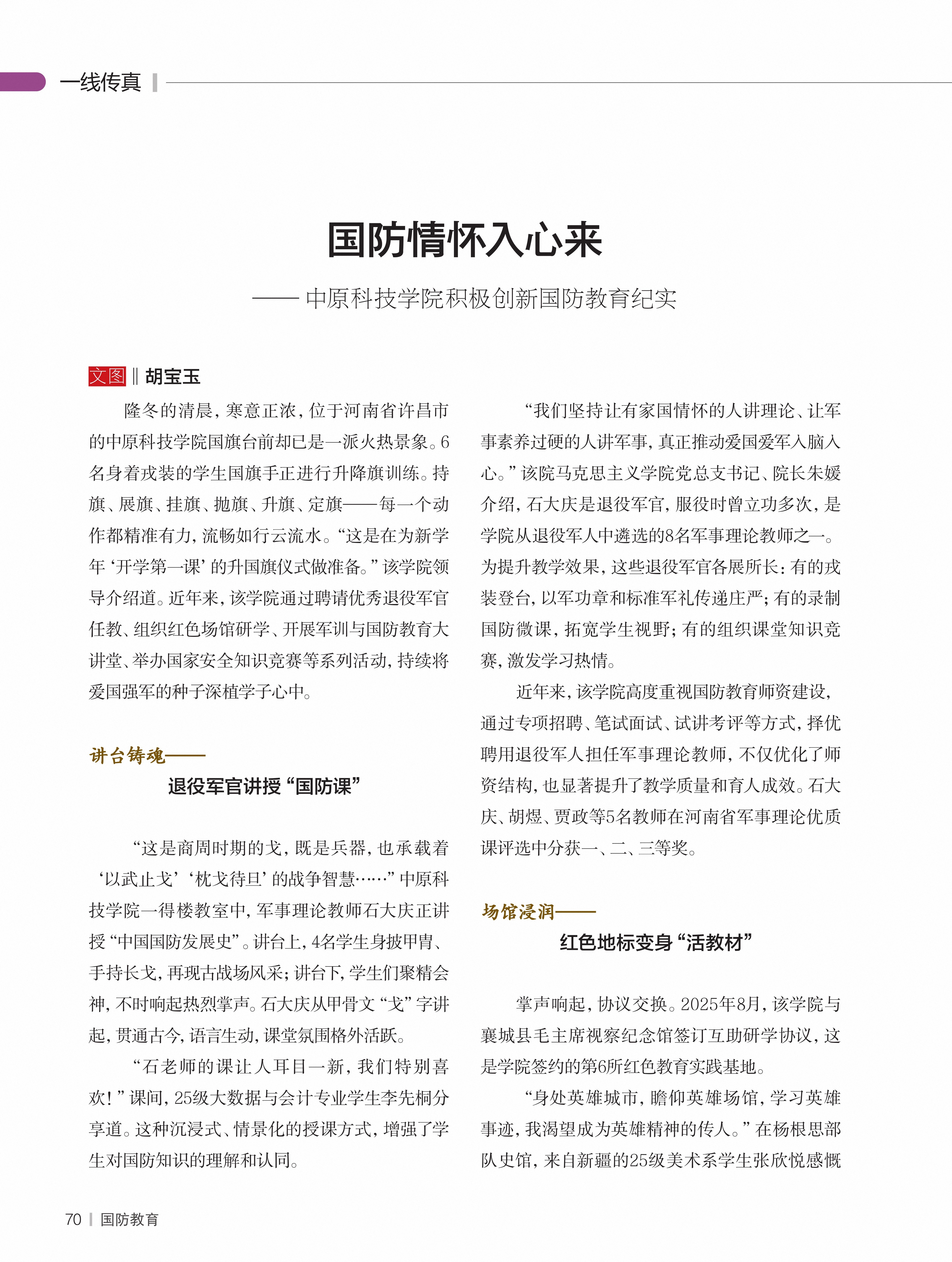 ——中原科技学院积极创新国防教育纪实