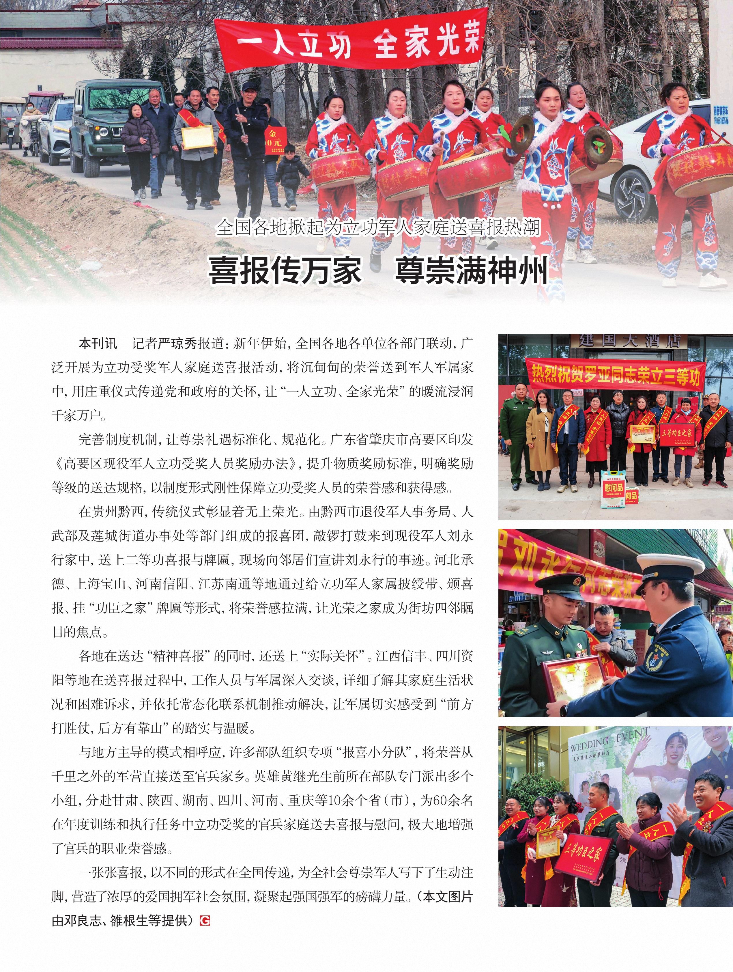 全国各地掀起为立功军人家庭送喜报热潮
