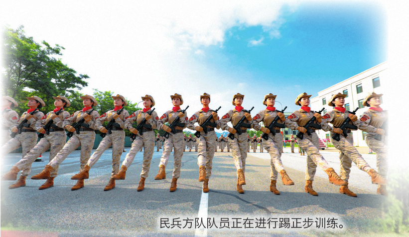 我们民兵方队采用脚跟至脚尖依次着地的步法,脚跟叩击地面的声响就是民兵方队的“节拍器”。训练期间,我始终处于方队最前方,整个方队队员全部依据我的脚步调整节奏、统一动作。普通队员出现失误,教练员通常稍加提醒即可;但身为领队,我的任何一点偏差都会直接影响整个方队的训练效果,因此我所承受的压力更大,被批评也是常有的事。