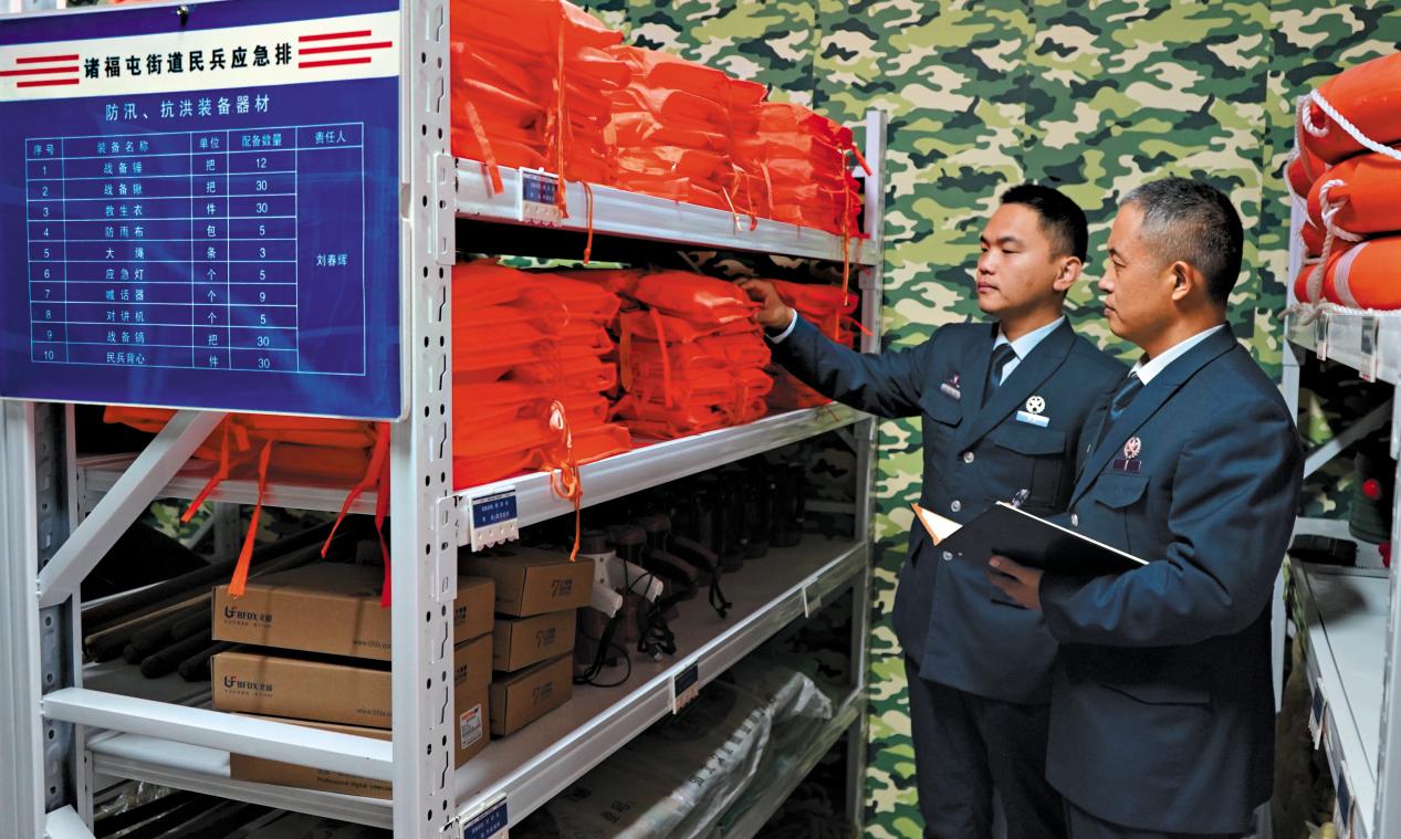正定县人武部组织人员对基层战备器材室进行检查和规范。(摄影/刘 冲)