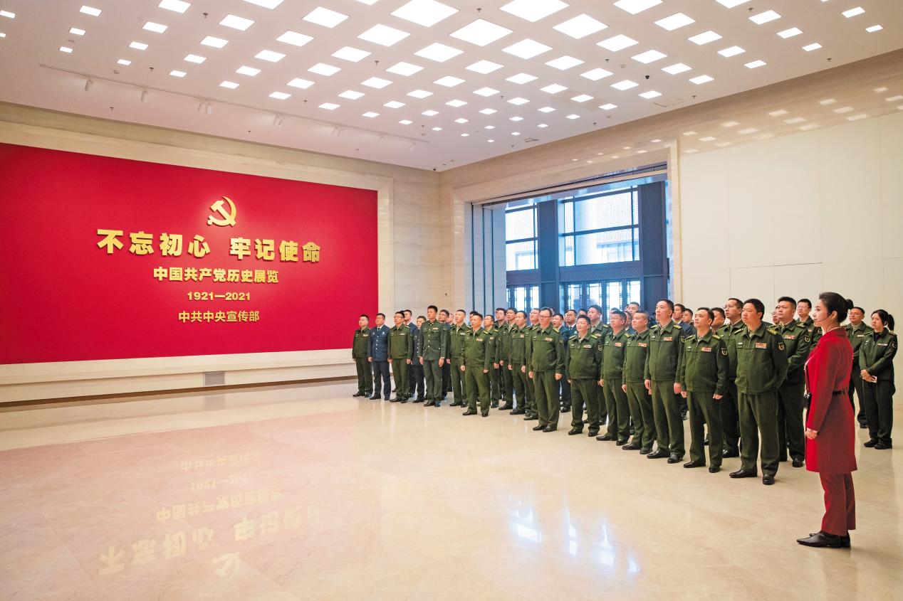 展厅内,中共一大会址复原场景、长征主题雕塑、党的七大投票箱、脱贫攻坚数据图表……一件件珍贵的文物实物、一份份翔实的档案资料、一组组生动的图片视频、一处处逼真的复原景象,记录着一个百年大党砥砺奋进的峥嵘岁月、波澜壮阔的历史进程,吸引着参训人员沉浸其中、深深思索。大家一致感到,回望百年党史,深感我们党一路走来的艰辛与不易,深知我们这一代人肩负使命责任的光荣与厚重,必须传承好、弘扬好伟大建党精神,尽心尽力干好本职工作,努力为推动国防动员高质量发展作出应有的贡献。