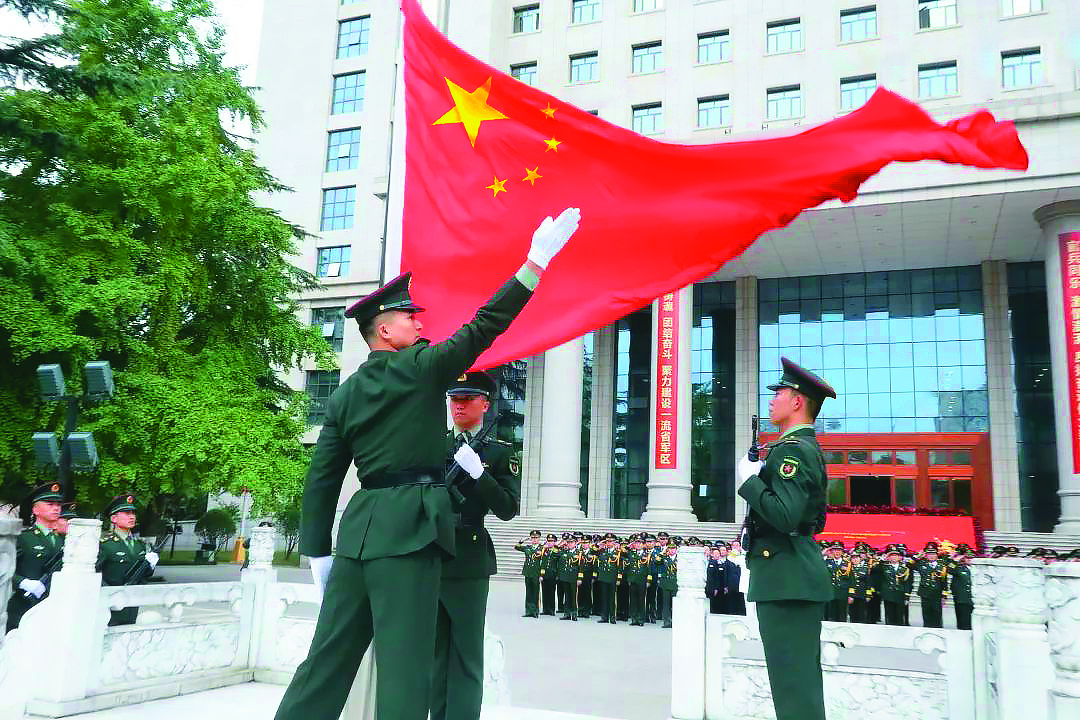 陕西省军区机关及直属单位隆重举行升国旗仪式。(摄影/王武俊)
