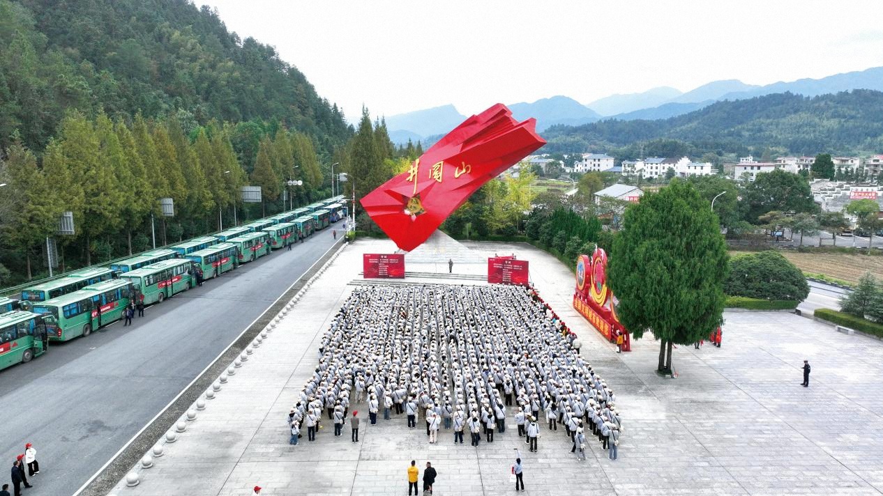 新干县军地联合组织中小学生到井冈山红旗广场开展红色研学活动。(摄影/姚俊杰)