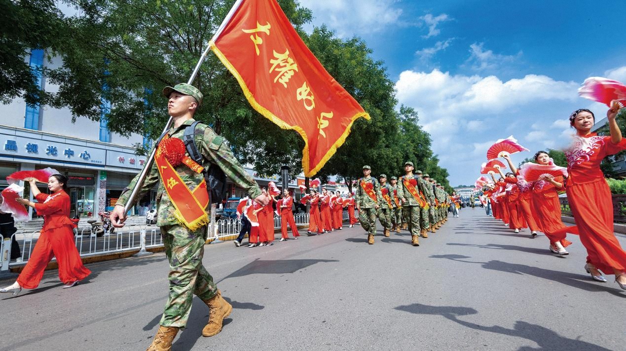 左权县军地结合欢送新兵开展“左权好兵”宣传活动。(摄影/曹 伟)